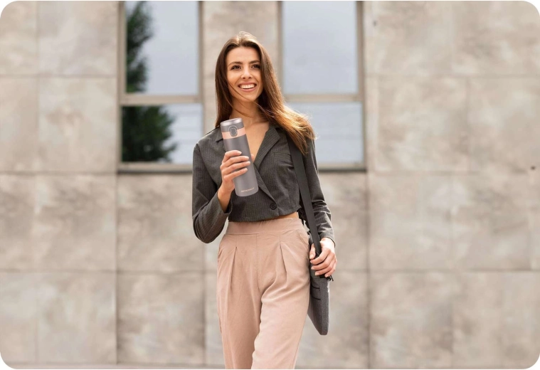 La forme compacte s’adapte aux porte-gobelets standards. Gardez votre boisson à la température idéale même en conduisant.
