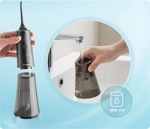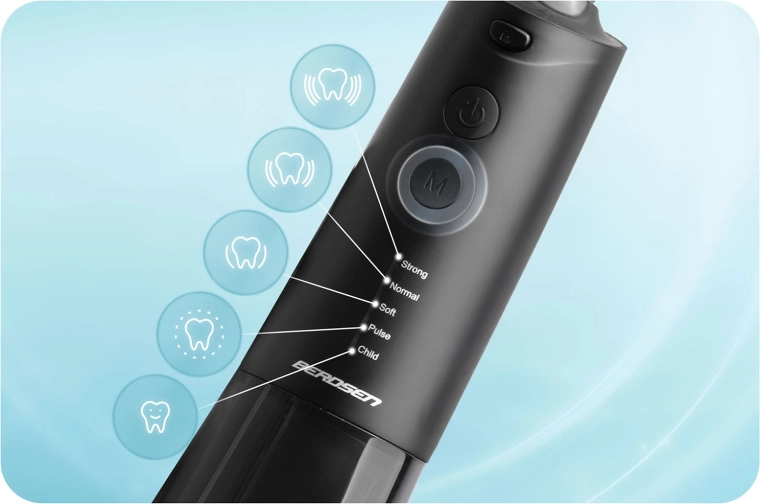 Obtenez un nettoyage minutieux mais doux des espaces interdentaires et de la ligne gingivale. L’hydropulseur Berdsen allie puissance et confort : jusqu’à 1800 pulsations/min pour éliminer efficacement la plaque et les résidus alimentaires, cinq modes de fonctionnement du plus doux au mode pulsé, et un grand réservoir de 300 ml pour une utilisation prolongée sans interruption.