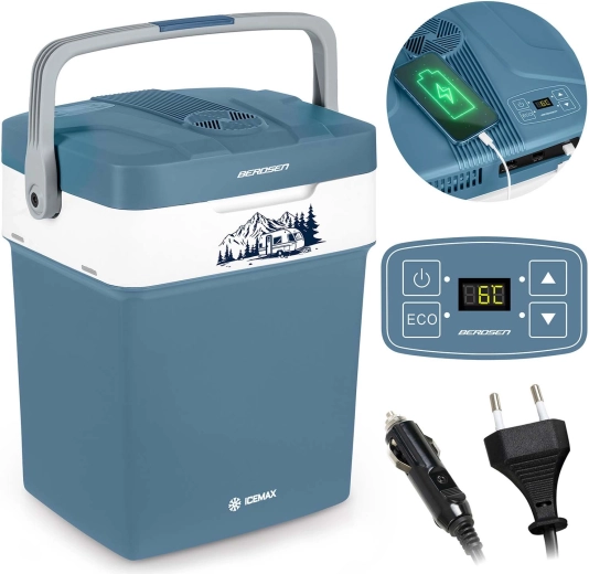 BERDSEN Icemax est une glacière électrique légère et compacte de 29 litres qui garde vos aliments et boissons parfaitement au frais. Elle dispose de parois doubles pour une isolation optimale, d’un ventilateur intégré pour une circulation d’air homogène et d’un affichage électronique clair avec réglage de la température et sélection ECO/Normal. Grâce à la double alimentation 12 V pour voiture et 230 V sur secteur, vous pouvez l’utiliser partout et à tout moment.