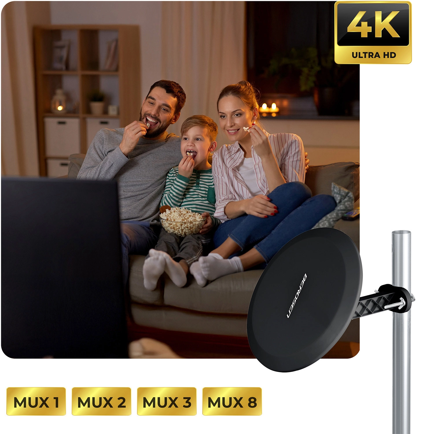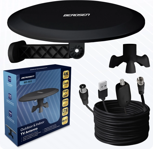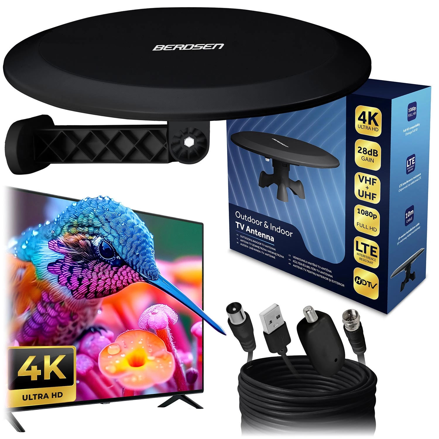 Antenne TV intérieure et extérieure Ultra HD 4K BERDSEN BD-955 noire