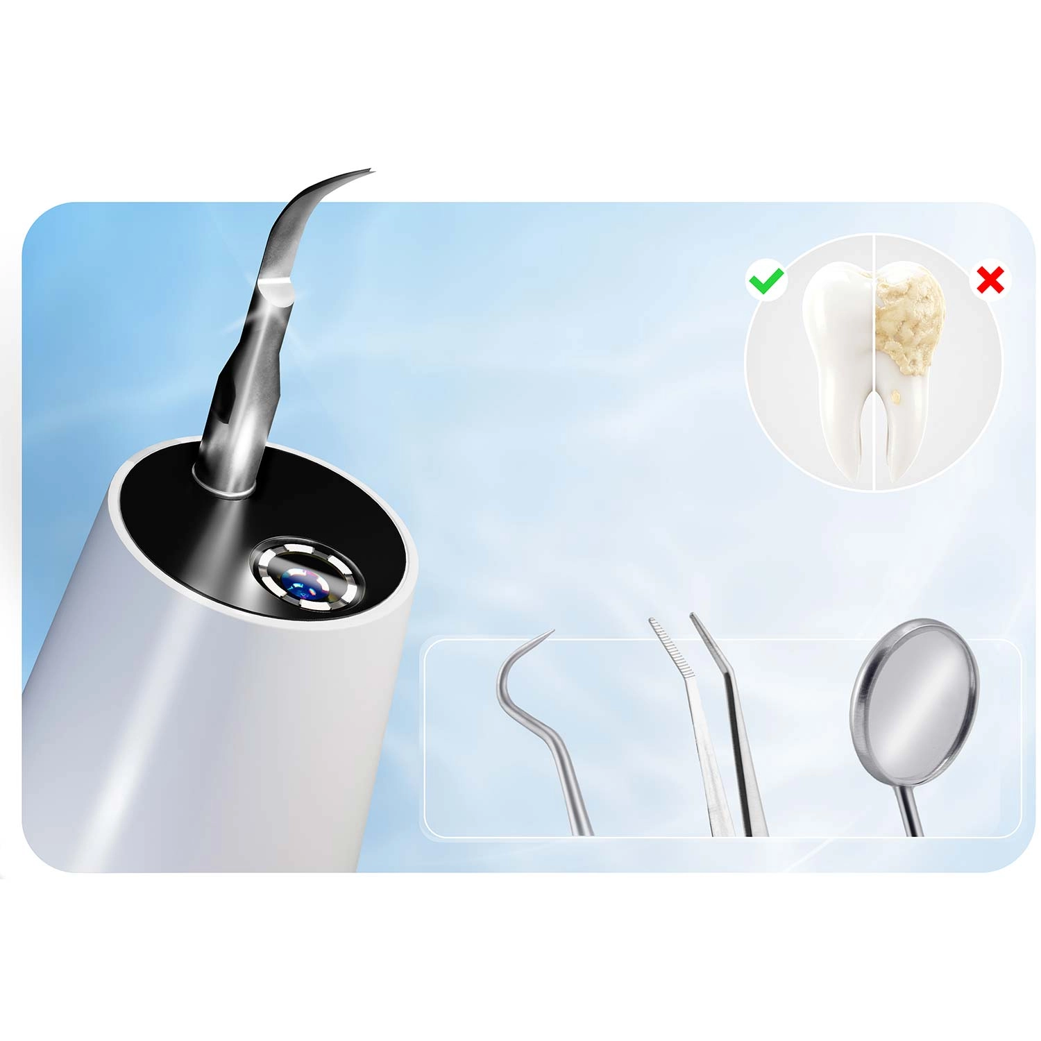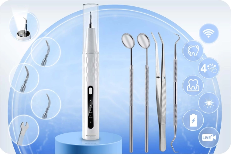 Détartreur ultrasonique avec caméra intégrée BERDSEN – 4 modes, lumière LED, USB‑C