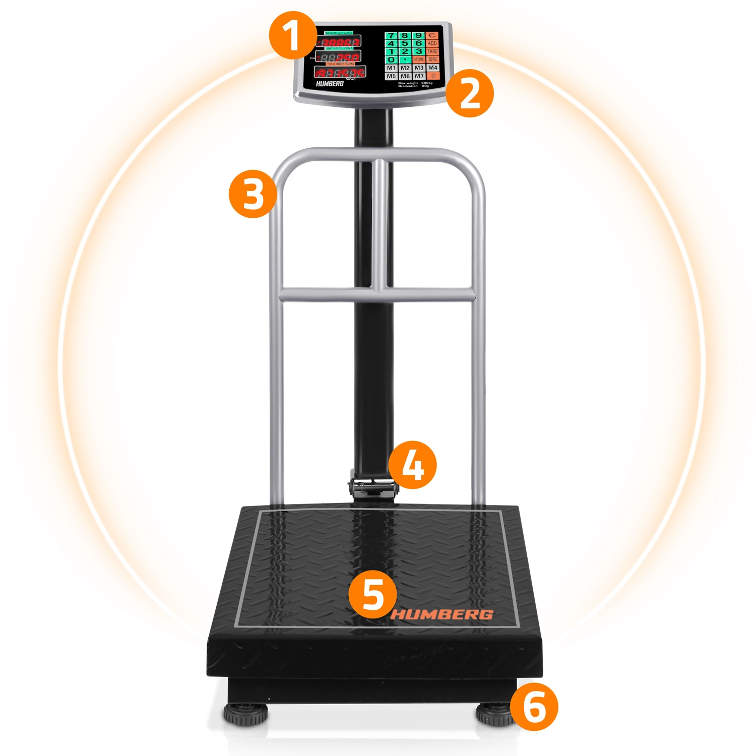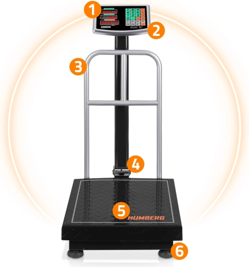 Le triple écran rétroéclairé est parfaitement lisible, le clavier fonctionnel inclut notamment la mémoire jusqu’à 7 prix et le mode comptage de pièces (1–99). Grâce à l’avertissement de surcharge, à l’allumage/extinction automatiques et aux pieds réglables, l’utilisation est rapide et sûre. L’alimentation est assurée par un adaptateur secteur ou une batterie 6 V 4Ah pour une utilisation mobile sans prise électrique.