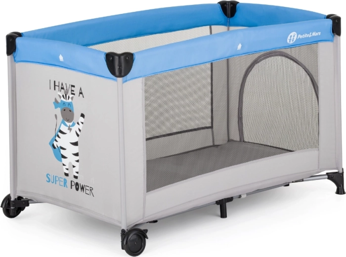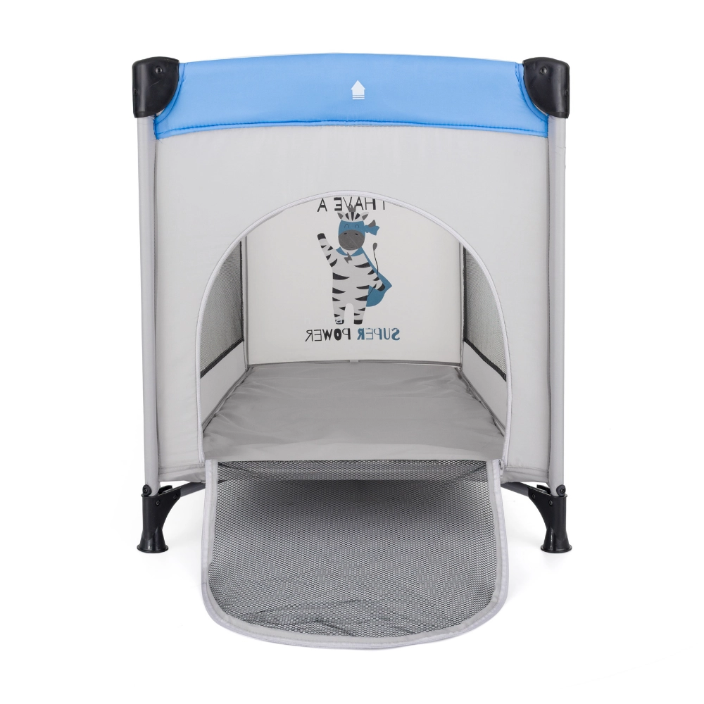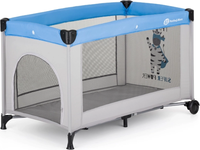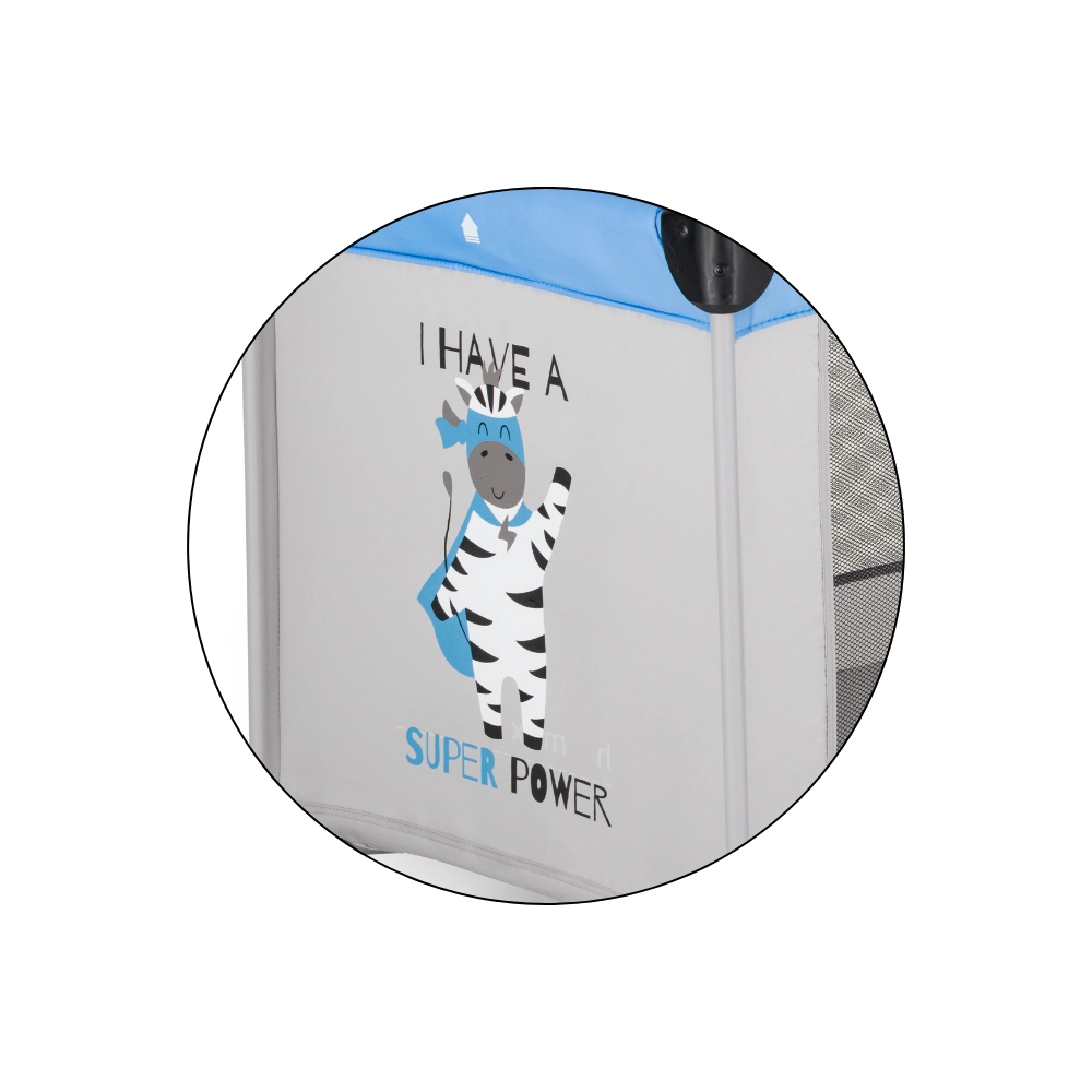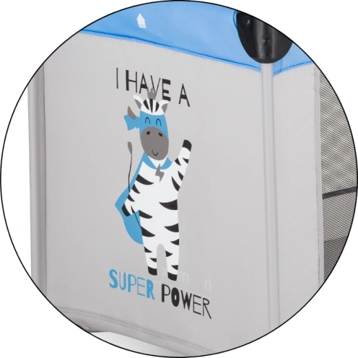 Le lit parapluie PETITE&MARS Koot au design ludique Zebra Super Power offre un espace sûr et confortable pour dormir et jouer. La structure métallique stable avec tissu résistant garantit une longue durée de vie, tandis que les côtés en mesh respirant offrent une excellente visibilité sur l’enfant et une circulation d’air optimale. Le Double Lock unique empêche tout pliage accidentel et renforce la sécurité d’utilisation.