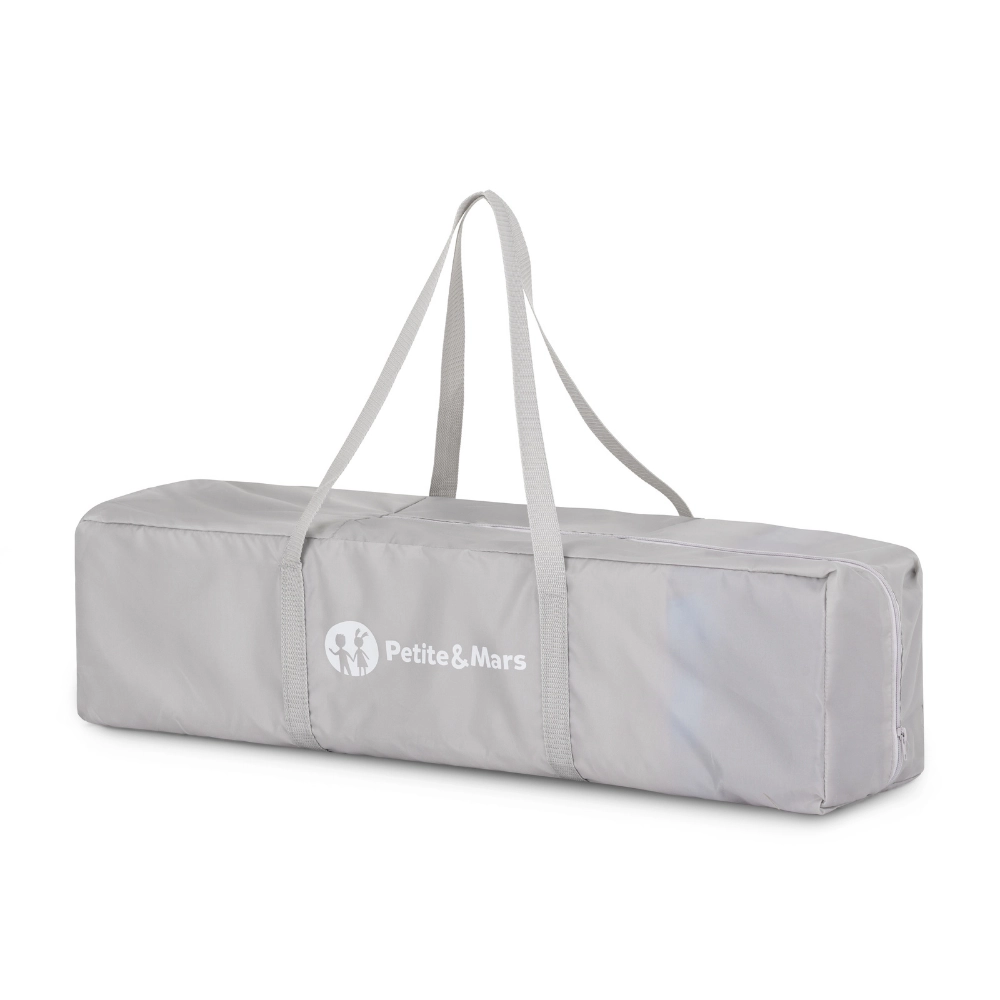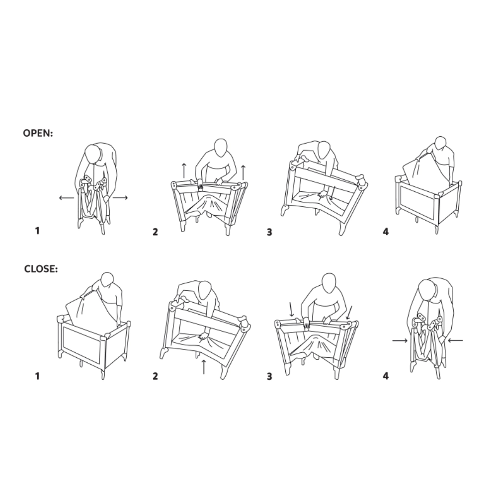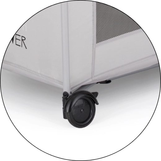 Le lit se plie rapidement et facilement à un format compact. Deux roulettes facilitent les déplacements dans la pièce, tandis que la fermeture zippée frontale permet aux enfants plus grands d’entrer et de sortir en toute sécurité. Le pack comprend une surface de couchage pliante et un sac de transport pour voyager sereinement. Pour les nouveau-nés, il est possible d’acheter un niveau additionnel pour une position de couchage plus haute.