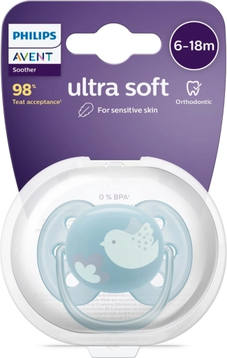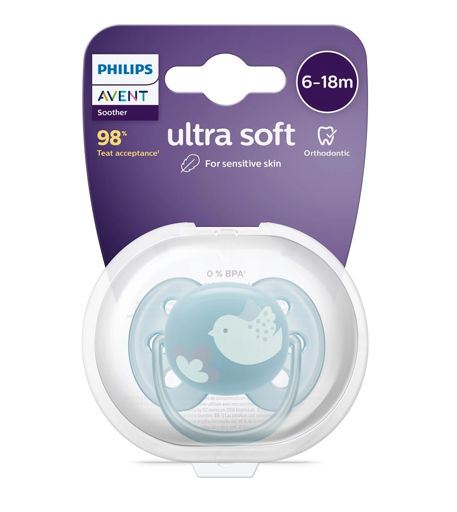 La Philips Avent Ultrasoft Premium en bleu est conçue pour la peau sensible des bébés. Son disque unique, doux et arrondi avec orifices de ventilation réduit la pression sur le visage et améliore la circulation de l’air. La tétine texturée en silicone, en silicone 100 % de qualité alimentaire, est agréable, résistante et sans BPA, pour que votre enfant se sente naturellement bien et en sécurité.