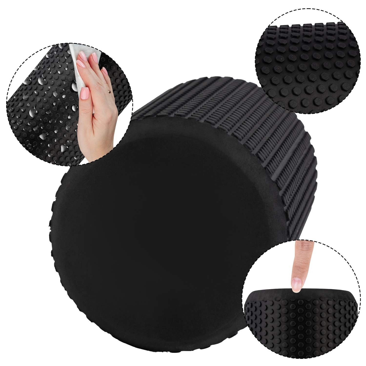 Sa surface texturée et antidérapante assure une stabilité optimale lors des exercices sur tapis comme sur sol dur. Le matériau est résistant à la déformation, hygiénique et facile à laver, ce qui permet de garder le rouleau propre en un instant – même après un entraînement en extérieur.