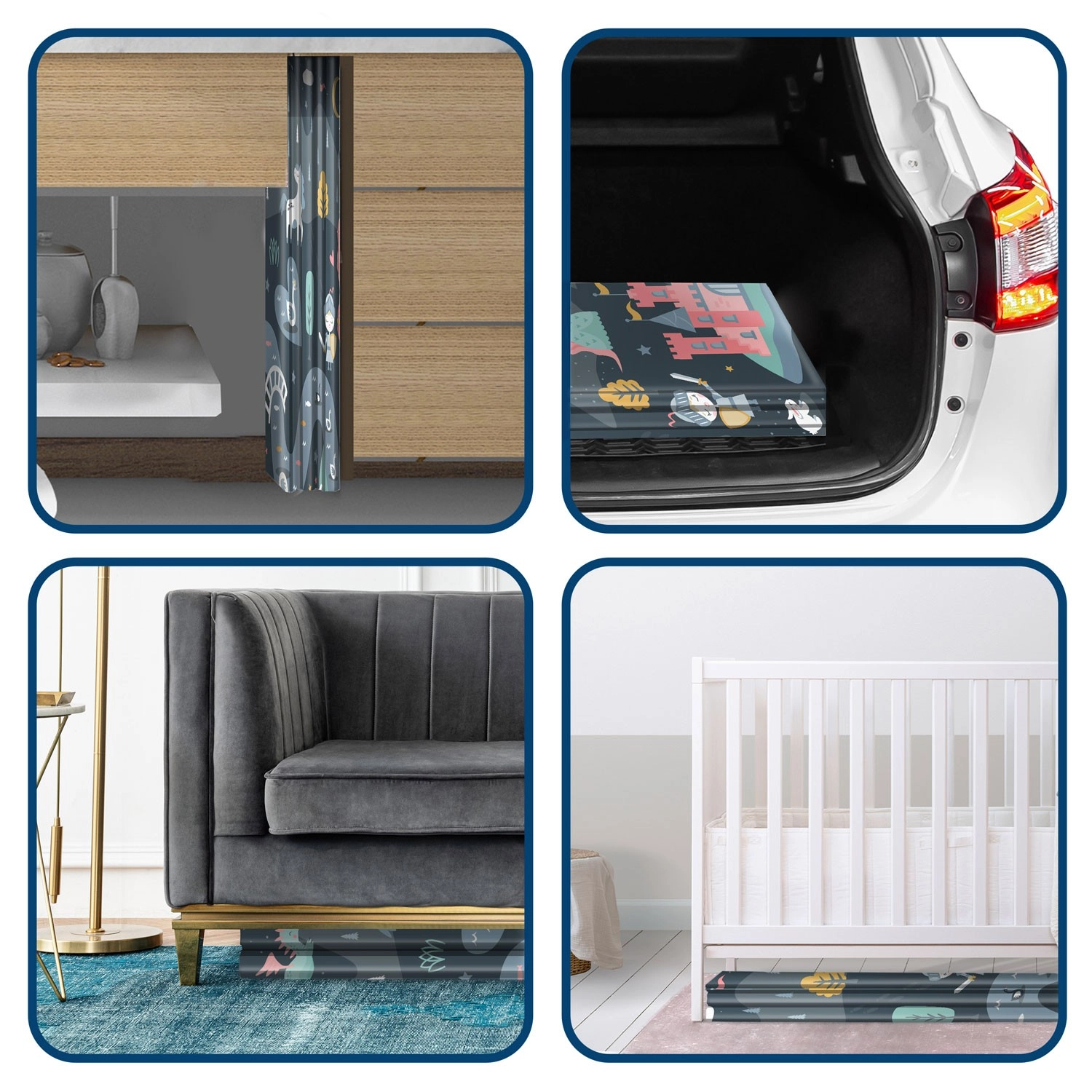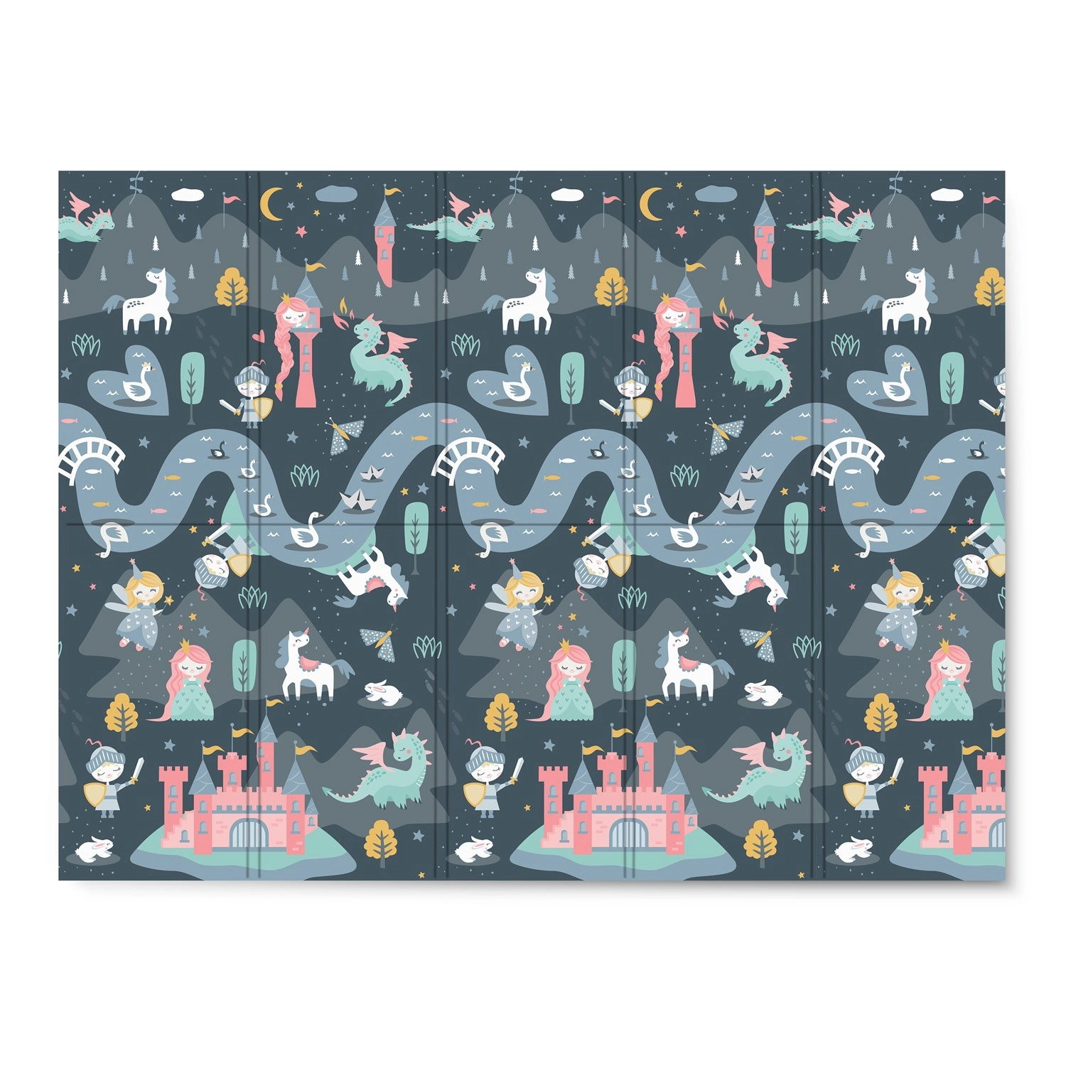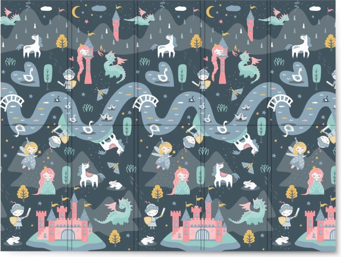 Chaque face propose un motif différent – une variante plus sombre et une plus claire avec châteaux, dragons et licornes. Changez facilement l’ambiance de la pièce et stimulez l’imagination des enfants pendant le jeu et l’apprentissage.