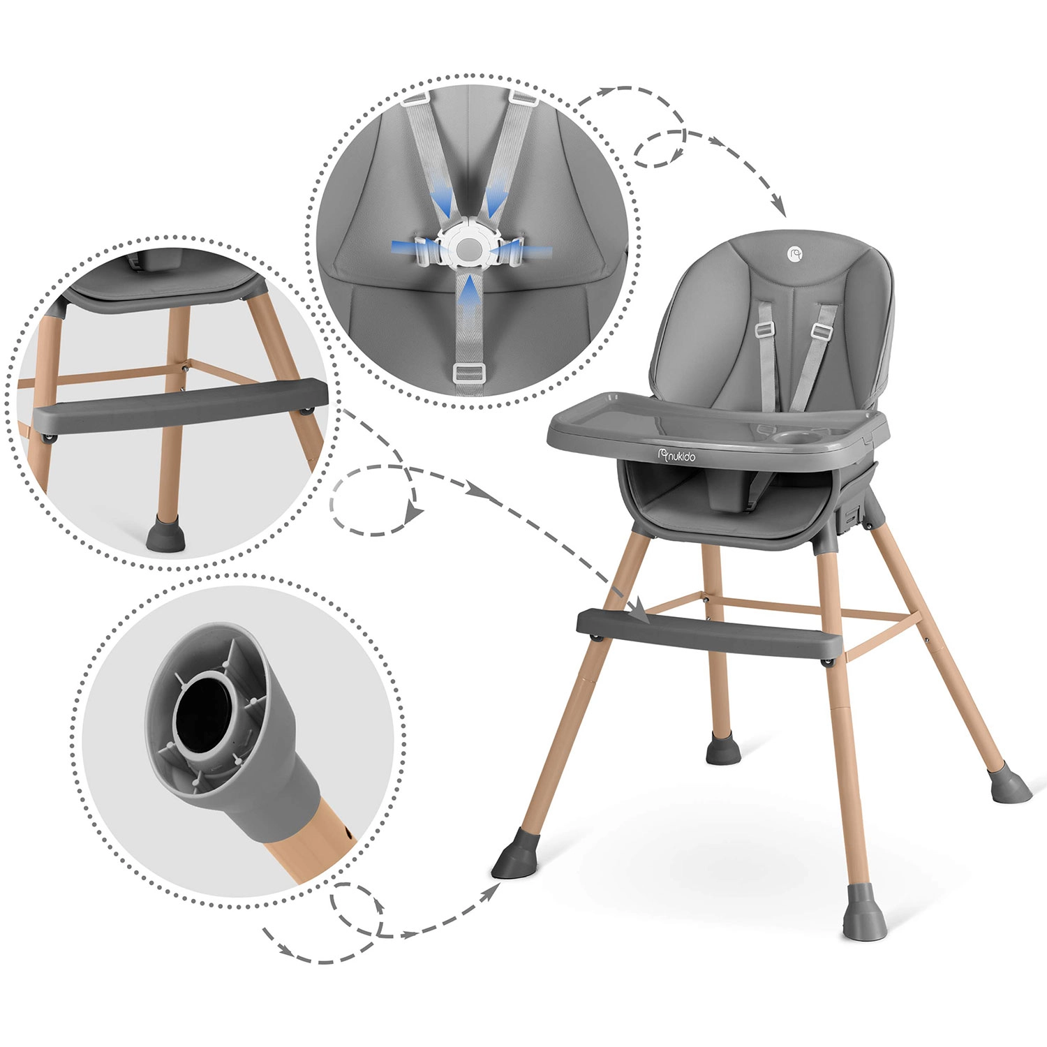 Chaise haute NUKIDO Tilo 3-en-1 gris