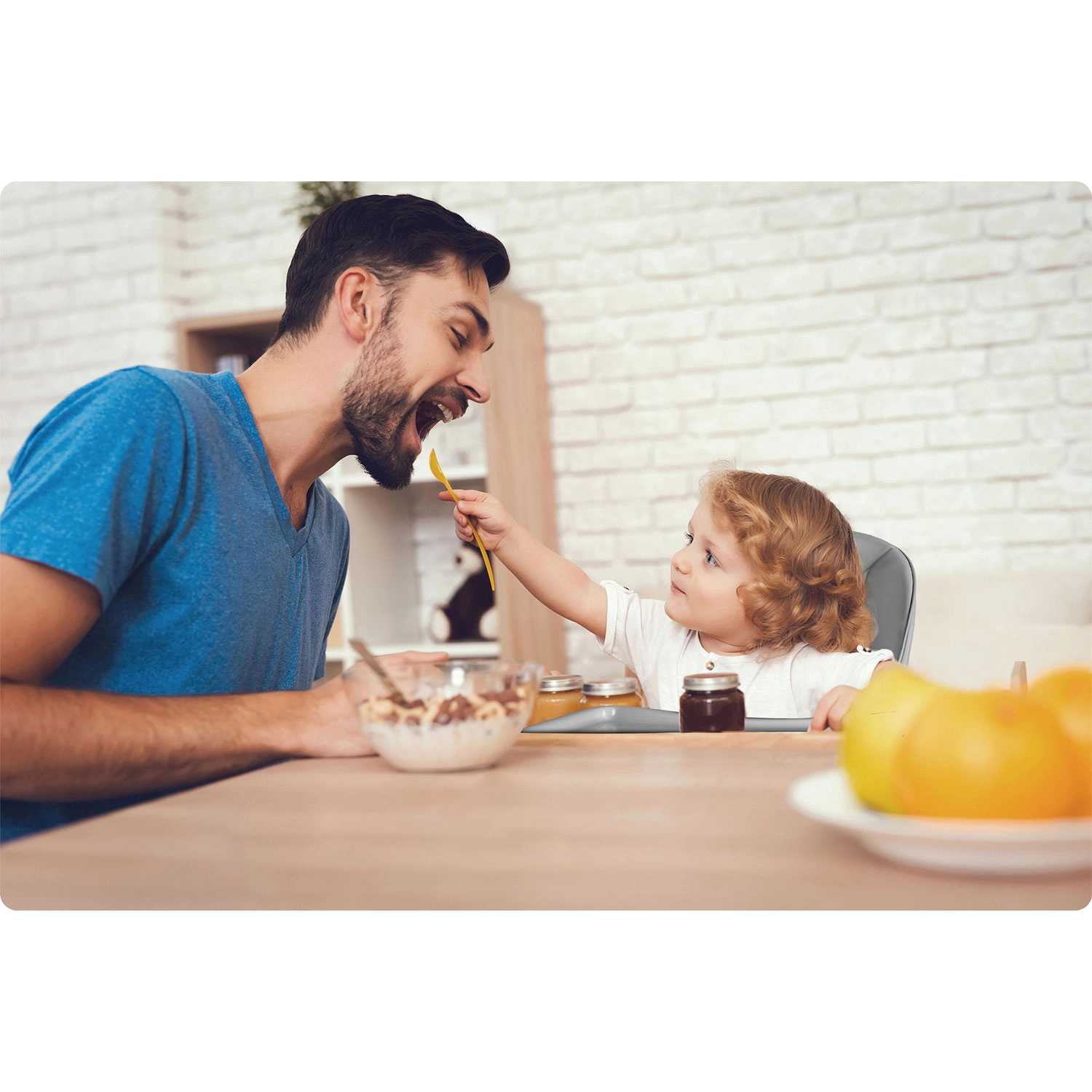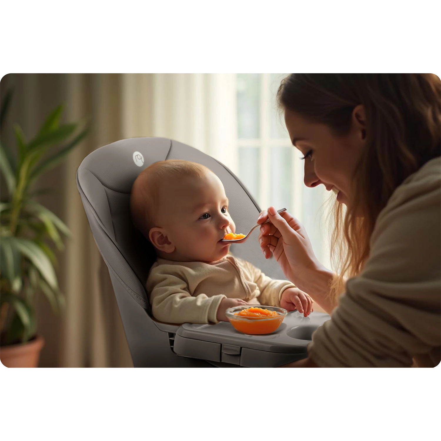 Ajustez facilement la configuration selon l’activité : chaise haute à table, assise basse pour jouer ou sans plateau pour partager le repas en famille.