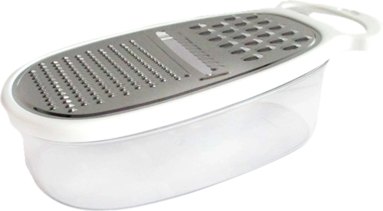 Râpe universelle en acier inoxydable avec poignée en plastique blanche, un aide fiable pour la cuisine quotidienne. Sa construction stable et ses surfaces affûtées assurent un râpage rapide et uniforme sans effort.