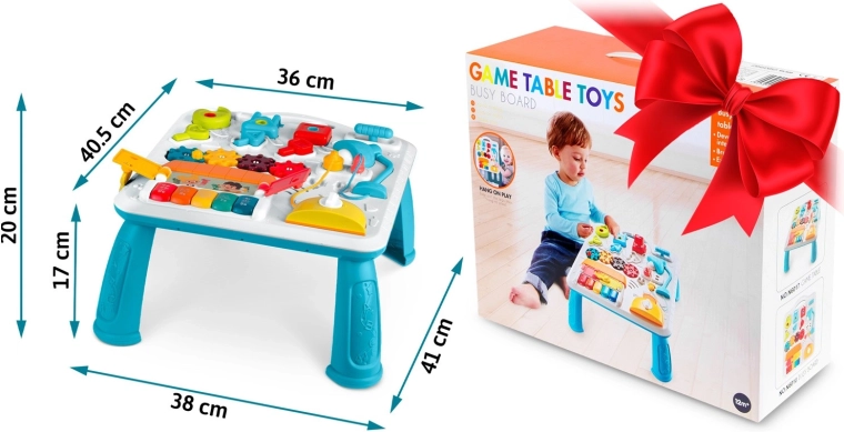 Les parents apprécieront la possibilité d’arrêt total et le réglage du volume à deux niveaux. La table est stable, robuste et visuellement stimulante, avec un montage rapide et simple. Idéal comme cadeau pour les enfants à partir de 12 mois, qui joueront pendant des heures tout en apprenant les couleurs, les chiffres et le principe de cause à effet.
