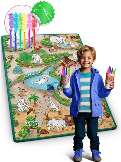 Découvrez le grand tapis à colorier roulable Ricokids qui offre aux enfants un confort moelleux, un divertissement créatif sans désordre et un nettoyage facile. Fabriqué en mousse EVA sûre, il est imperméable, réutilisable et, grâce à l’isolation contre le froid, parfait pour jouer, dessiner et faire de l’exercice. Inclus : un set de feutres OFFERT.