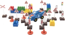 Kit de Construction Auto-école offre amusement et éducation en un! Contient 16 pièces de panneaux de circulation, 2 cônes et une voiture, idéal pour le développement des compétences des enfants.