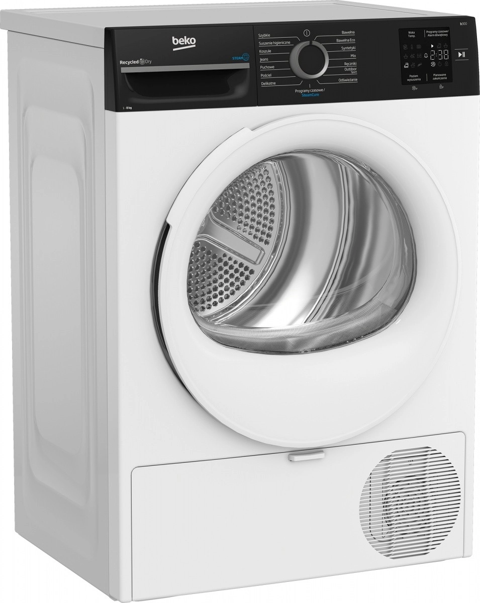 Vous cherchez un sèche-linge fiable pour les petits espaces qui protège vos vêtements ? Le modèle BEKO BM3T3823WBW au format slim combine la technologie innovante EcoGentle pour un séchage doux sans perte de couleur avec le système intelligent AquaWave, qui, grâce à ses ailettes spécialement conçues et à sa porte vitrée incurvée, garantit un mouvement ondulatoire délicat du linge.