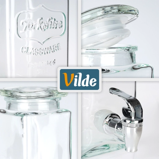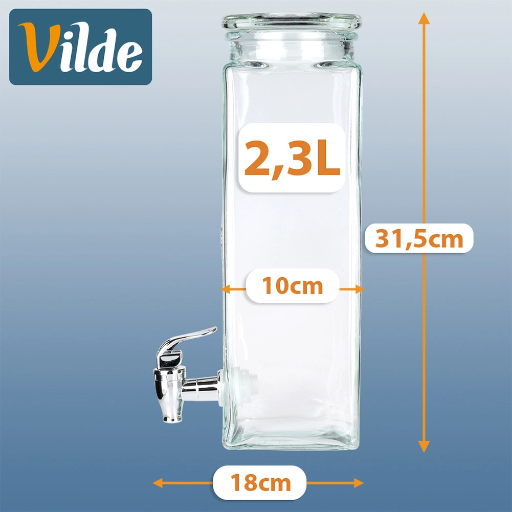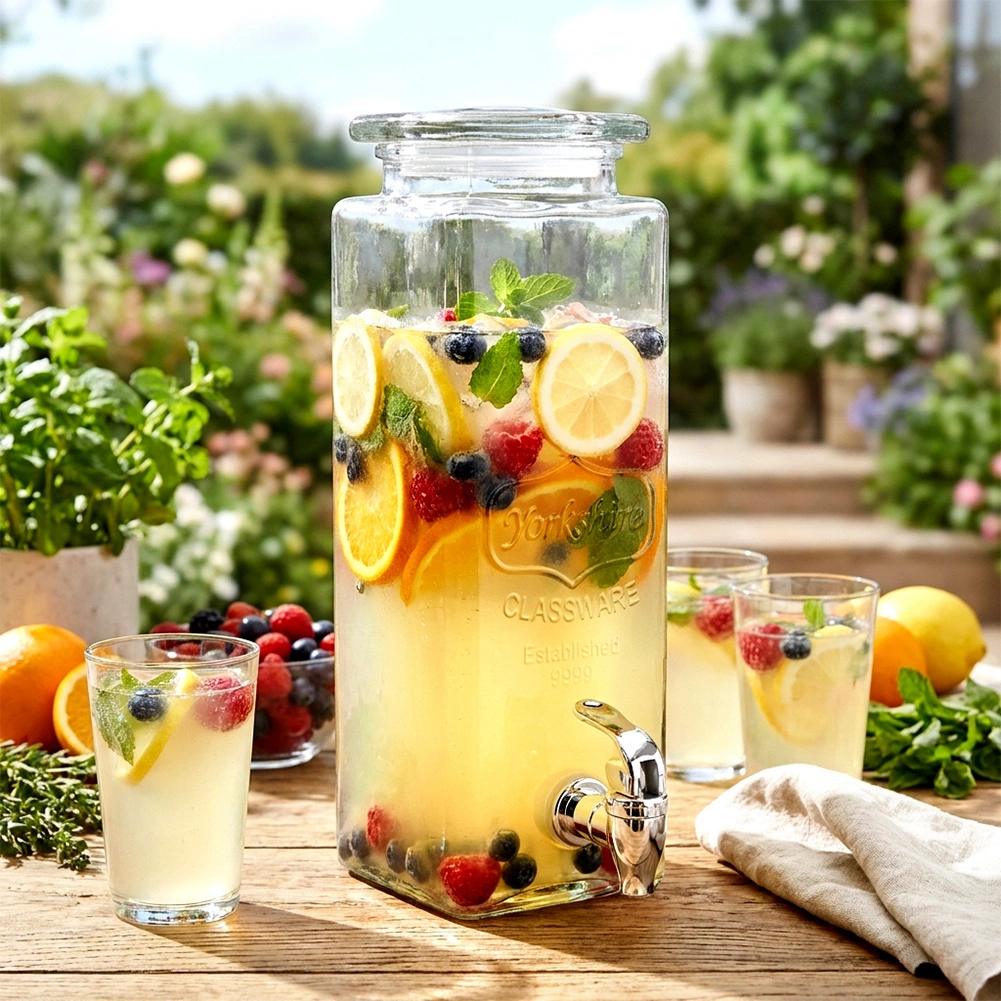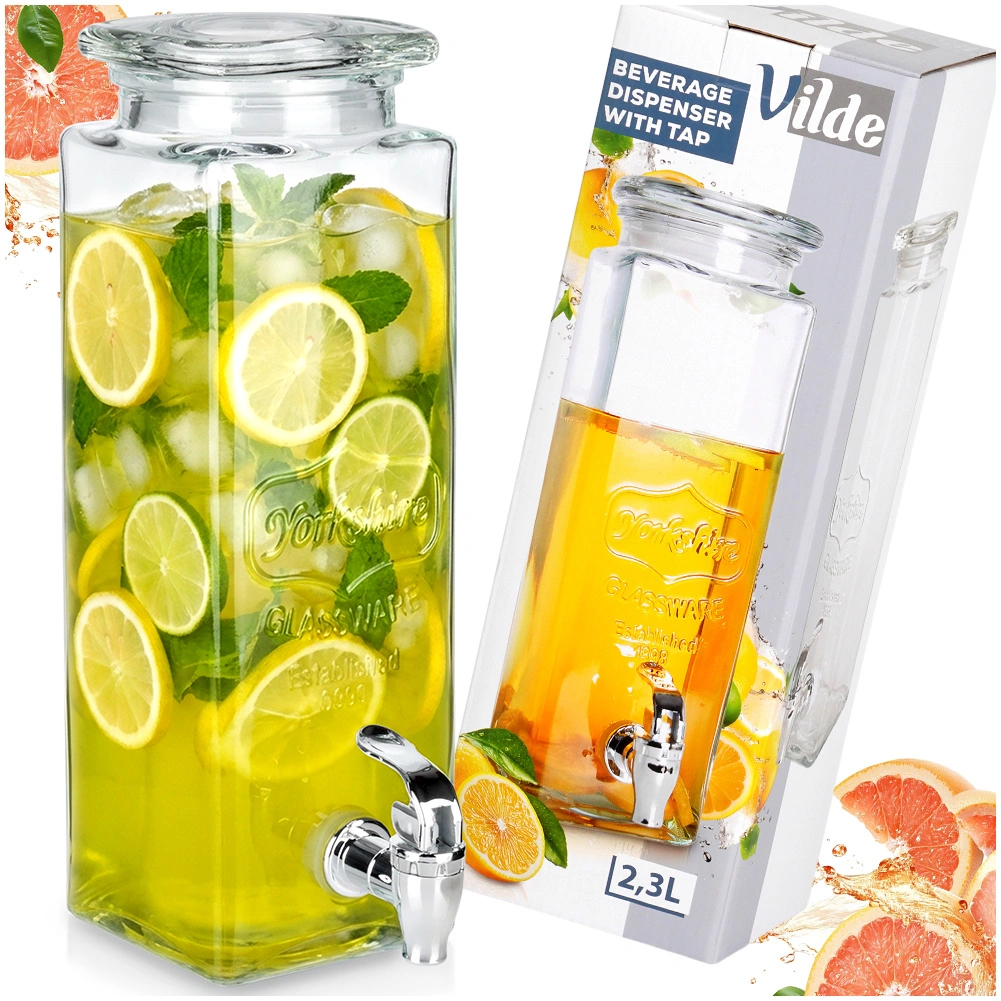 Distributeur de boissons en verre élégant d’une capacité de 2,3 l avec robinet pratique, idéal pour servir de la limonade, de l’eau infusée aux fruits ou du thé glacé. Grâce au large goulot et au couvercle hermétique, le remplissage et l’entretien sont faciles et hygiéniques. Verre épais, matériaux sûrs pour le contact alimentaire et service pratique sans éclaboussures en font un excellent choix pour les garden-parties comme pour la maison.
