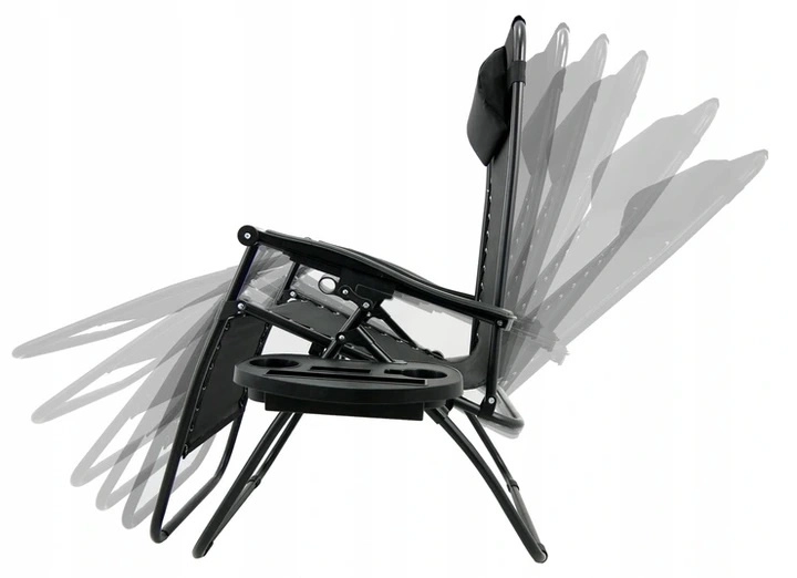 Chaise longue de jardin pliante avec plateau, poche et coussin – noir
