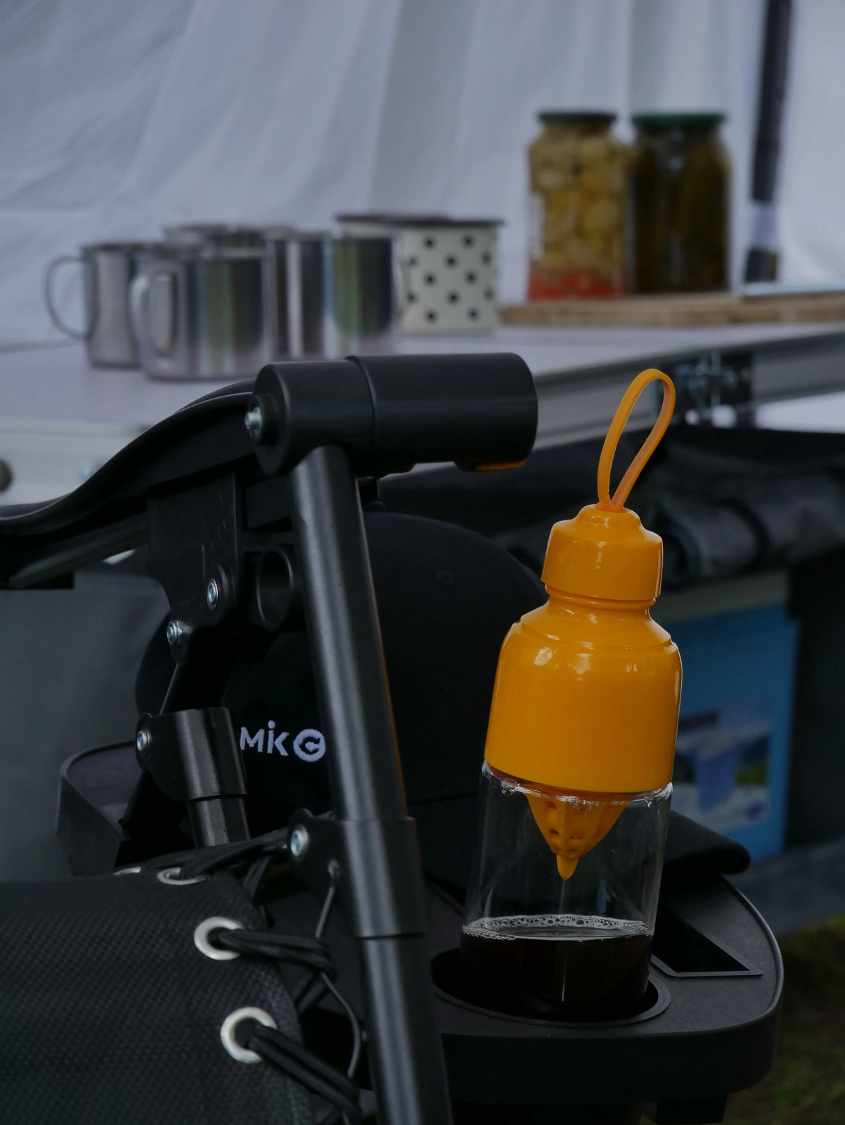 Plateau latéral amovible avec porte-boisson et emplacements, poche latérale