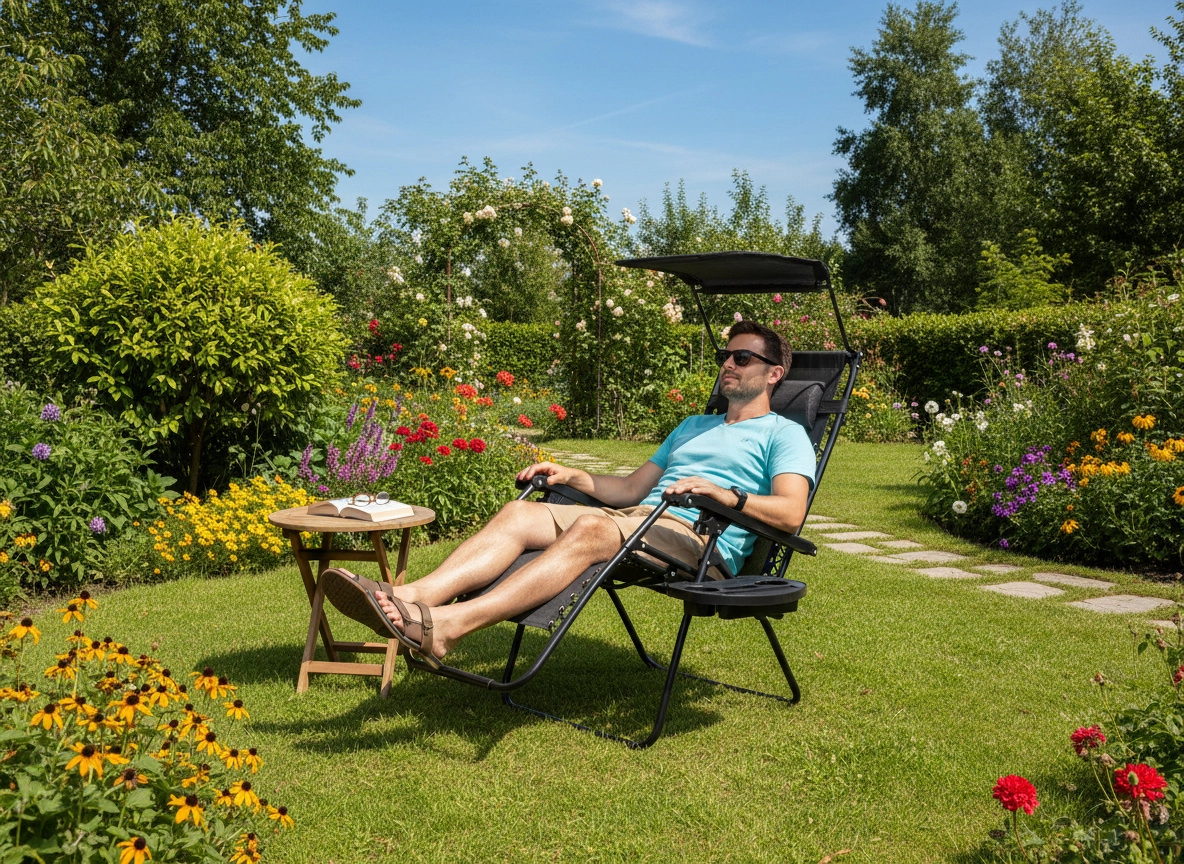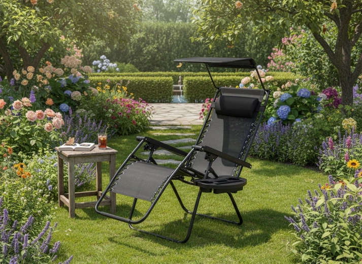 Découvrez le confort de la position zéro gravité dans un design moderne. Un cadre en acier robuste avec peinture époxy et une toile respirante Textilene 1x2 assurent stabilité, résistance et confort au quotidien. Grâce au mécanisme d’inclinaison, vous réglez facilement la position idéale pour lire, vous reposer ou bronzer, tandis que l’auvent réglable vous protège du soleil direct.