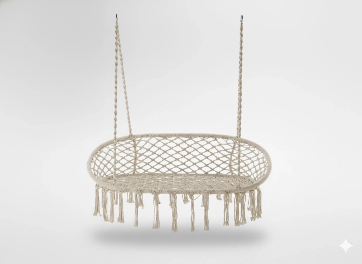 Créez votre propre havre de paix avec ce spacieux fauteuil suspendu double de couleur beige. Il offre un confort exceptionnel pour deux, une structure en acier robuste et une capacité de charge jusqu’à 300 kg. Son style intemporel et naturel s’harmonise parfaitement avec tout jardin, terrasse ou intérieur.