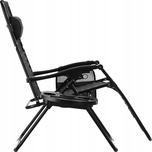 L’équipement pratique comprend une tablette amovible avec porte‑gobelet et emplacement pour téléphone, ainsi qu’une poche latérale pour les petits objets. L’appuie‑tête réglable soutient la nuque et la tête, tandis que le repose‑pieds ajustable soulage les jambes après une longue journée.