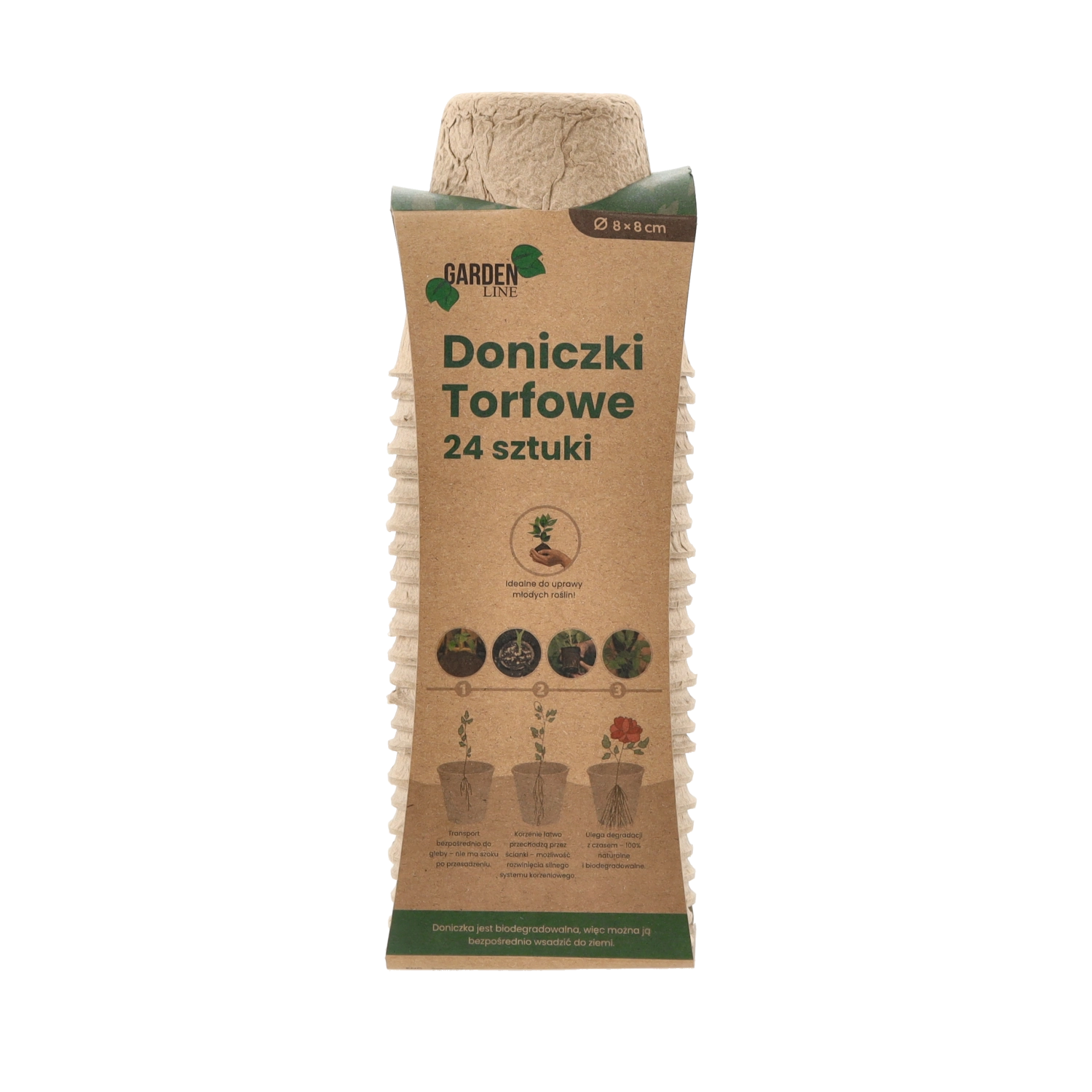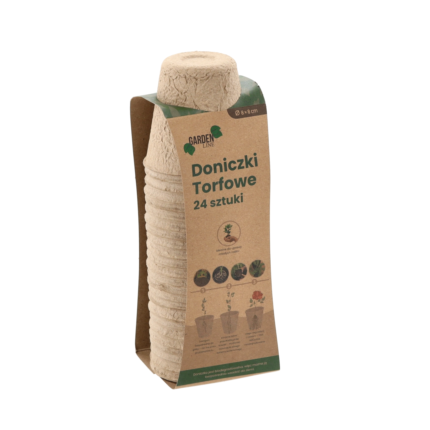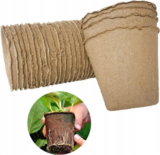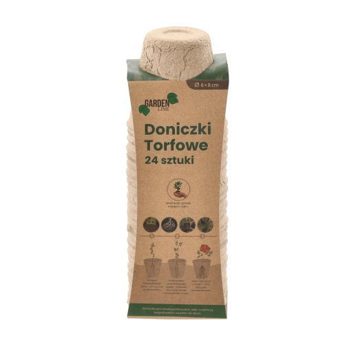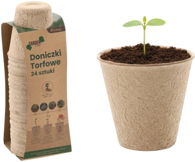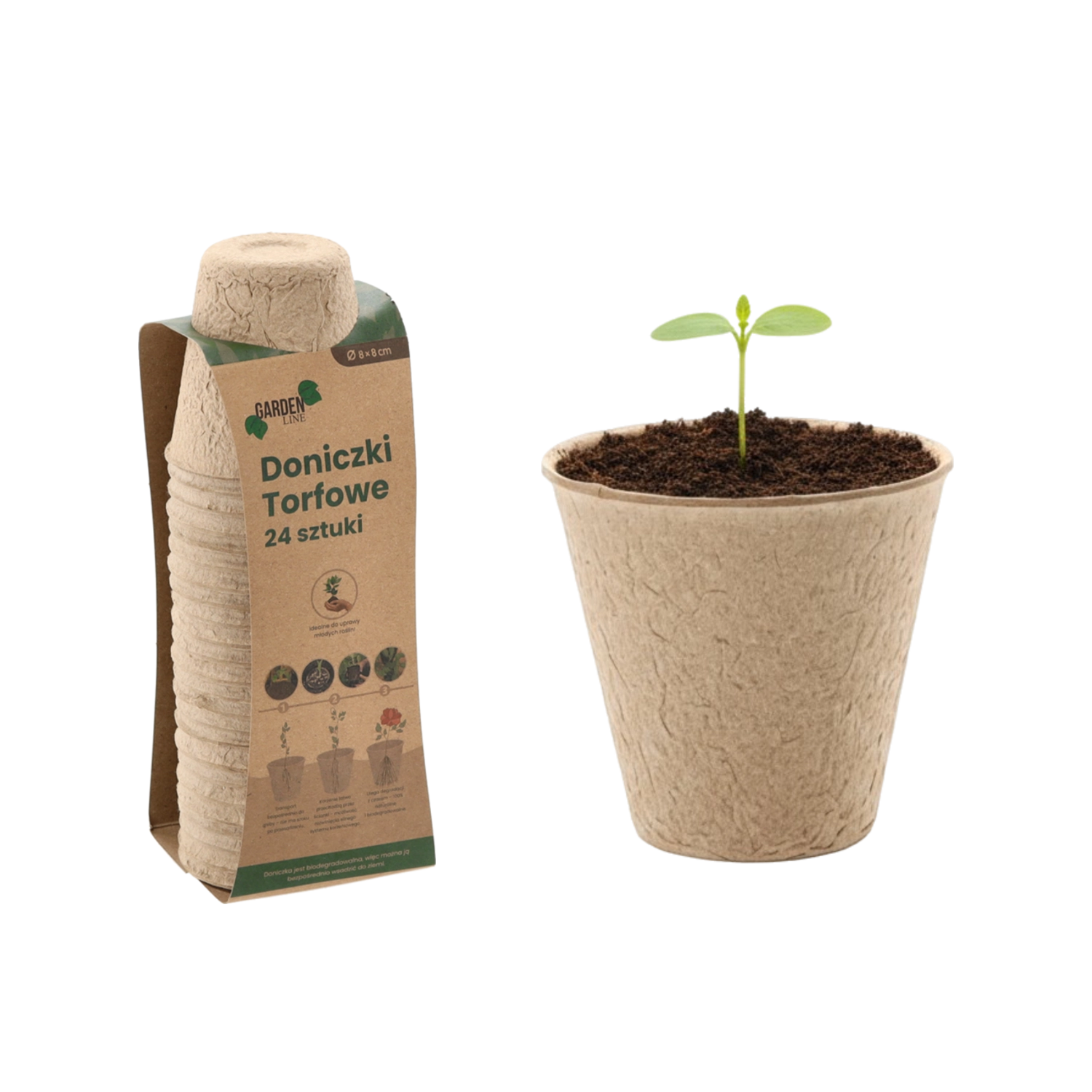 Ensemble écologique de 24 pots de tourbe au format 8 × 8 cm pour le semis et le repiquage de légumes et de fleurs. Les pots sont 100 % biodégradables et peuvent être plantés directement en pleine terre sans endommager les racines. Idéal sur appui de fenêtre, en serre ou tunnel – pour une germination saine, un repiquage facile et un entretien durable des plantes.