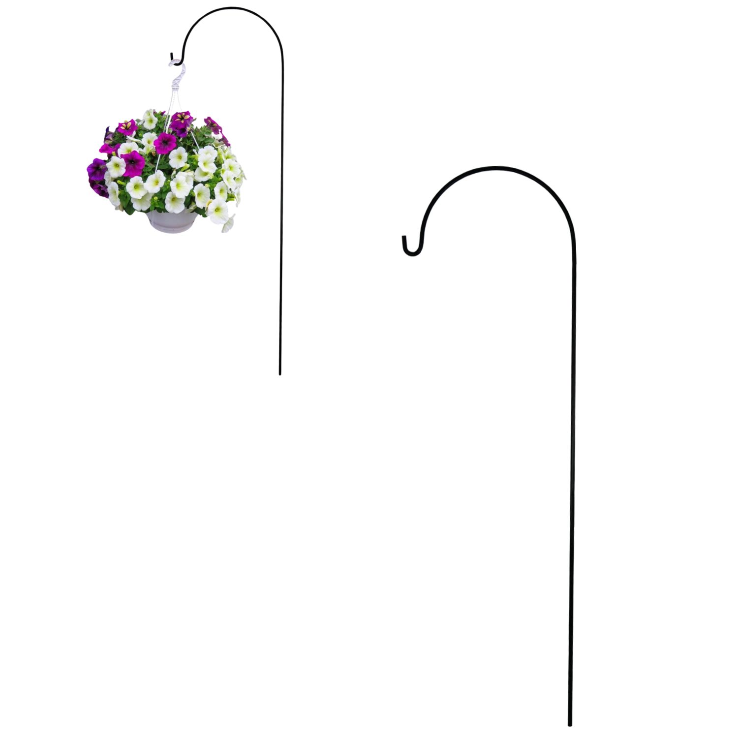 Crochet de jardin universel de 38 × 120 cm, idéal pour suspendre des lanternes, des guirlandes lumineuses, des paniers fleuris ou des mangeoires pour oiseaux. Grâce à sa structure métallique robuste avec revêtement protecteur noir, il résiste aux intempéries et offre une longue durée de vie. Installation facile par piquetage dans le sol, permettant un placement flexible partout dans le jardin.