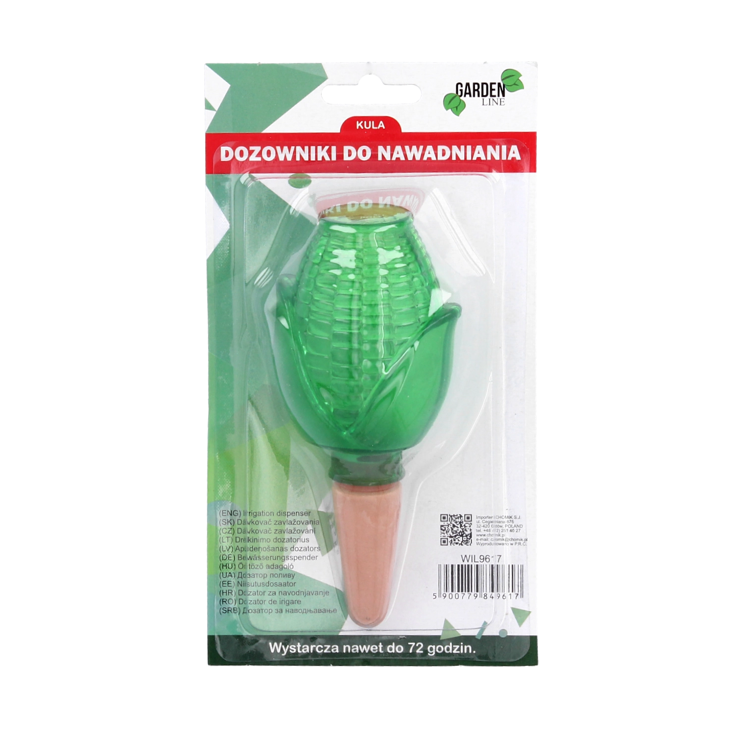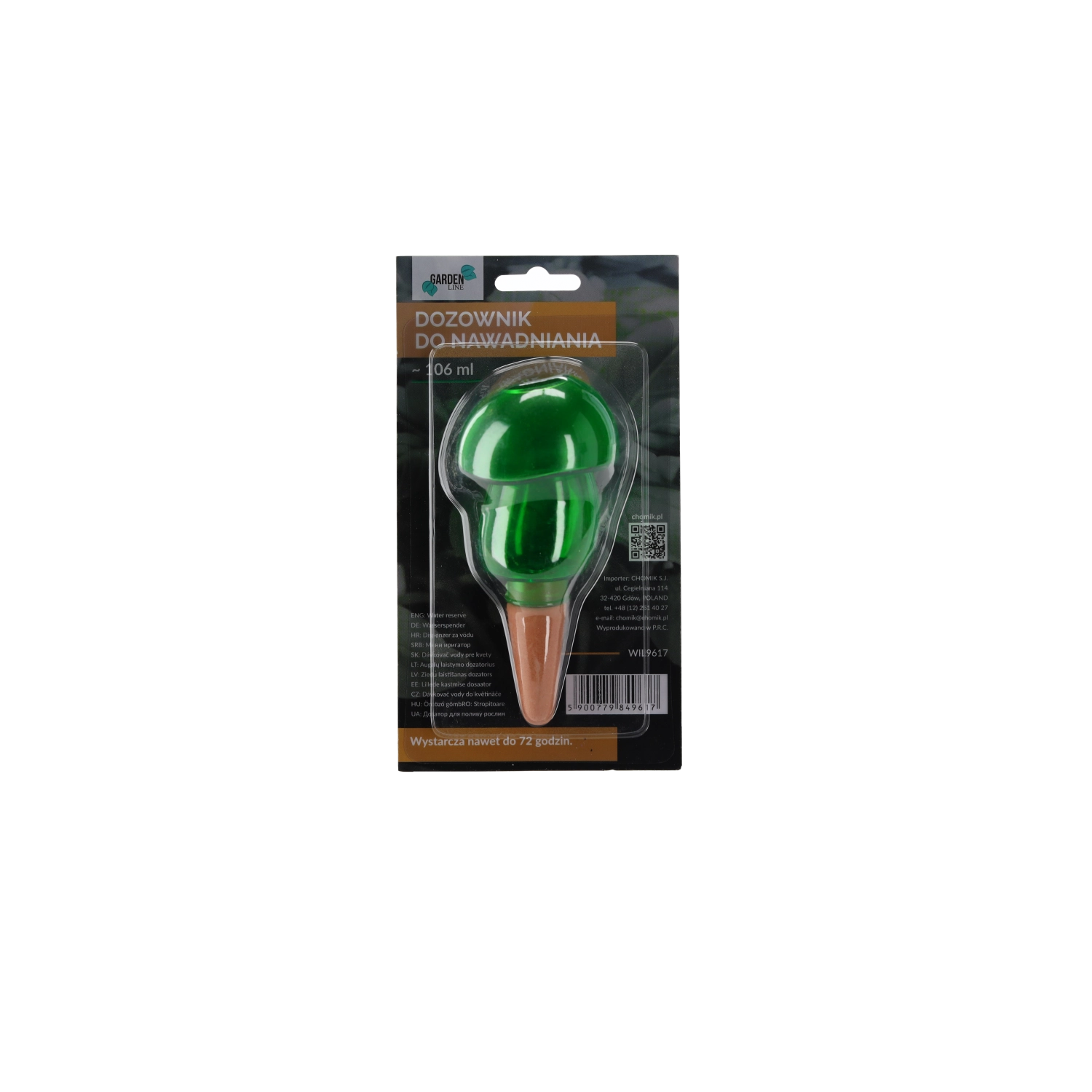 Le doseur fournit une libération stable et lente de l’eau directement dans le substrat, de sorte que les plantes restent hydratées pendant trois jours, même en votre absence.