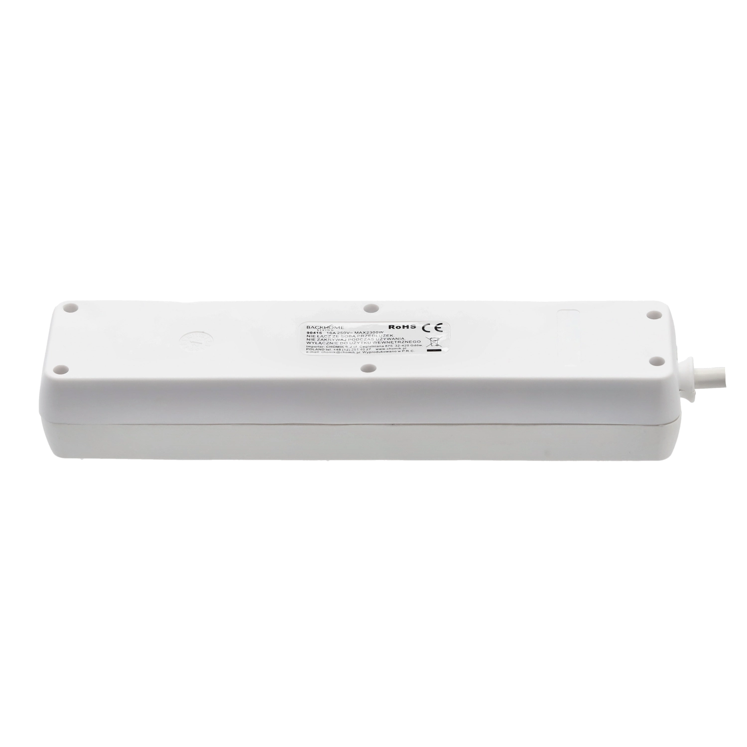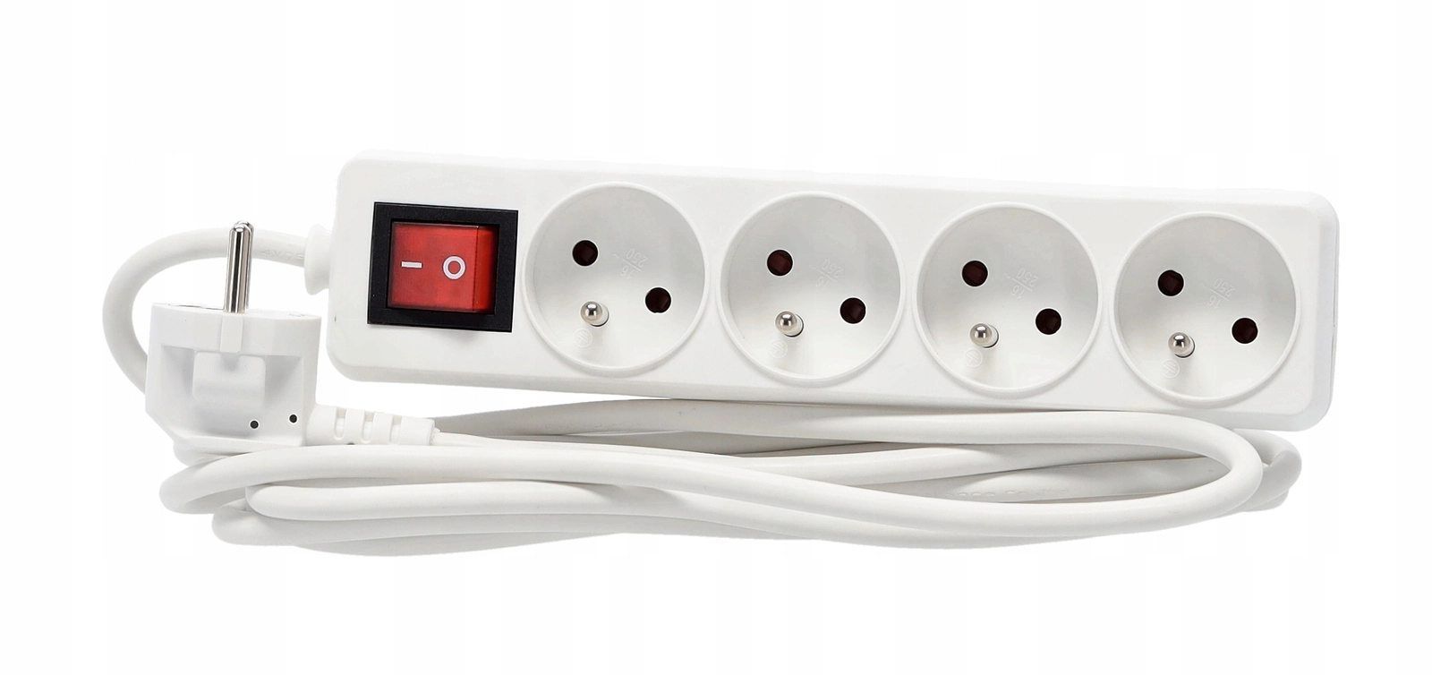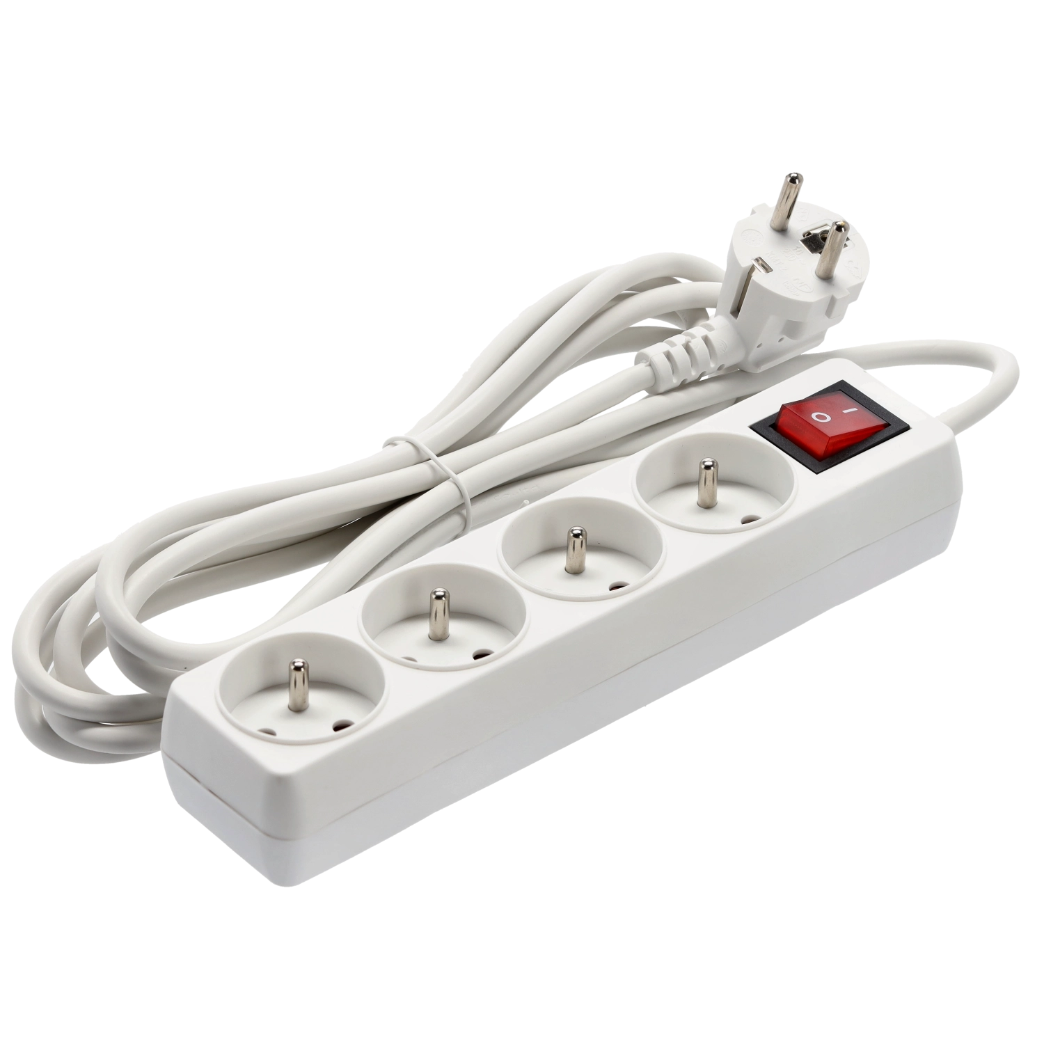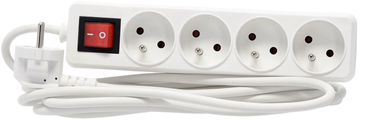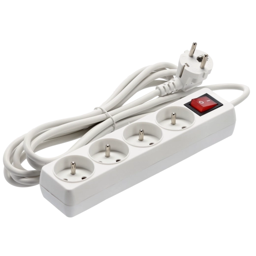 Pratique multiprise blanche avec 4 prises, câble en cuivre de 3 m et interrupteur principal rétroéclairé pour une gestion sûre et confortable de l’alimentation de plusieurs appareils simultanément. Elle offre une construction robuste, une protection enfant et des performances fiables pour la maison comme pour le bureau.