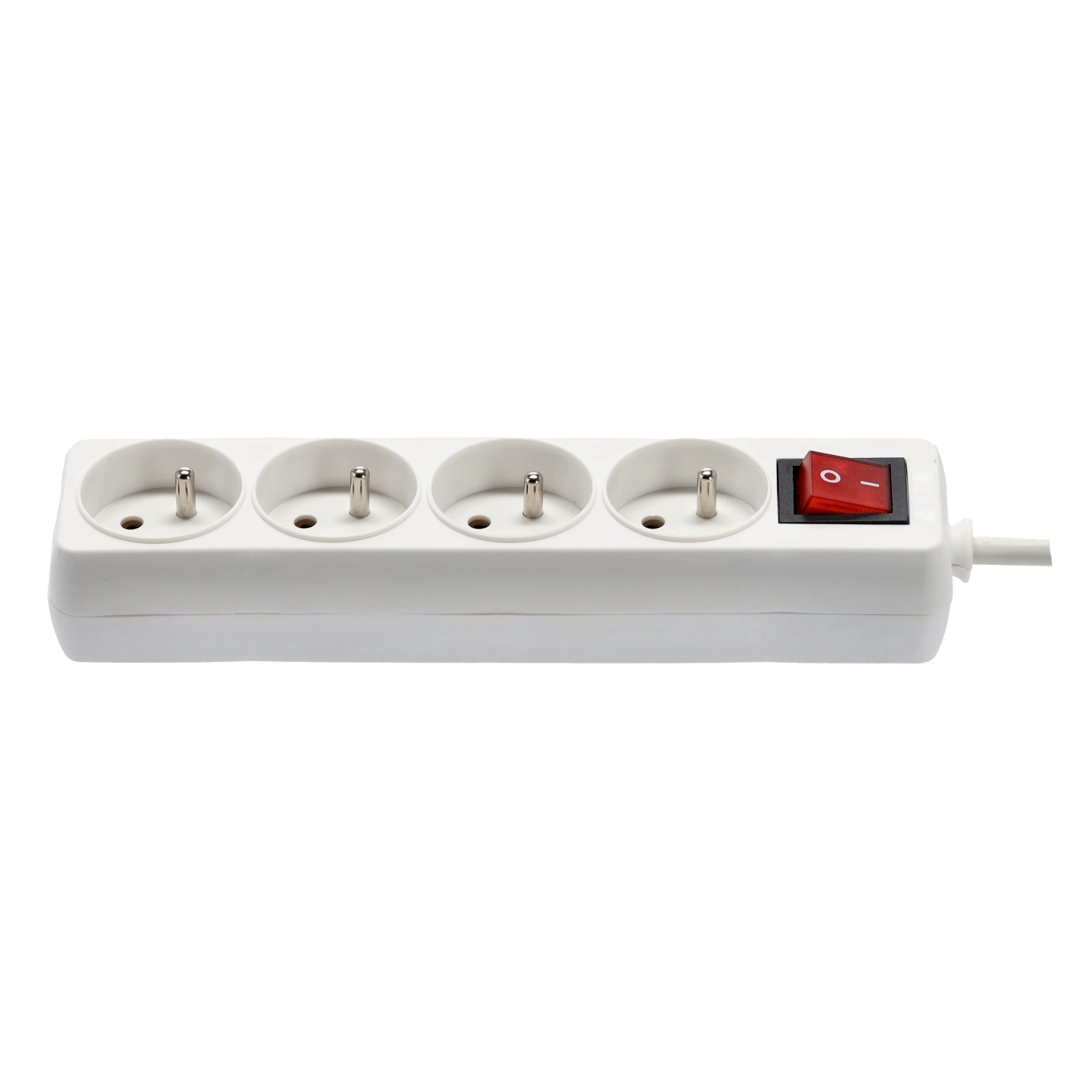 Multiprise parafoudre avec interrupteur, 4 prises, 3 m, blanche