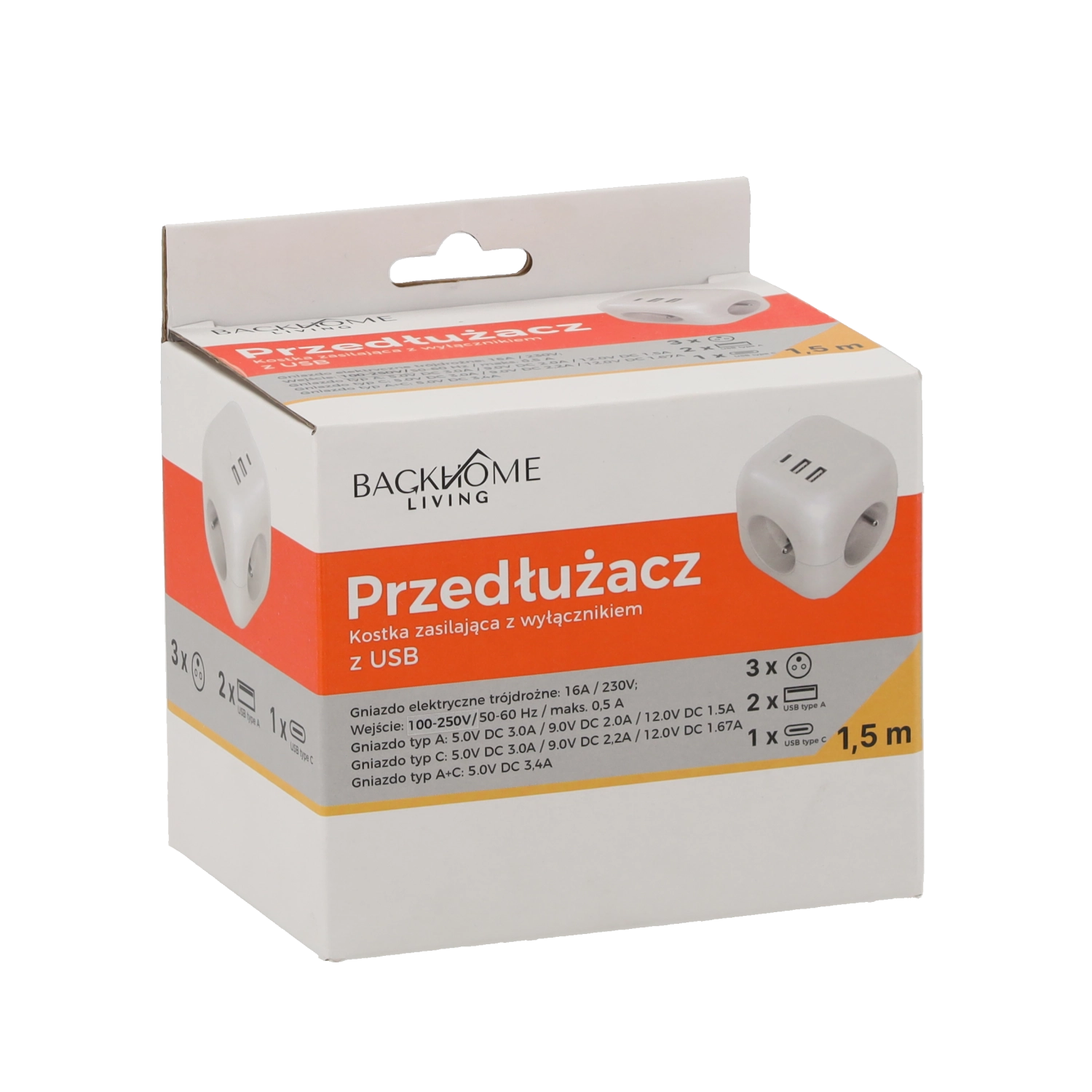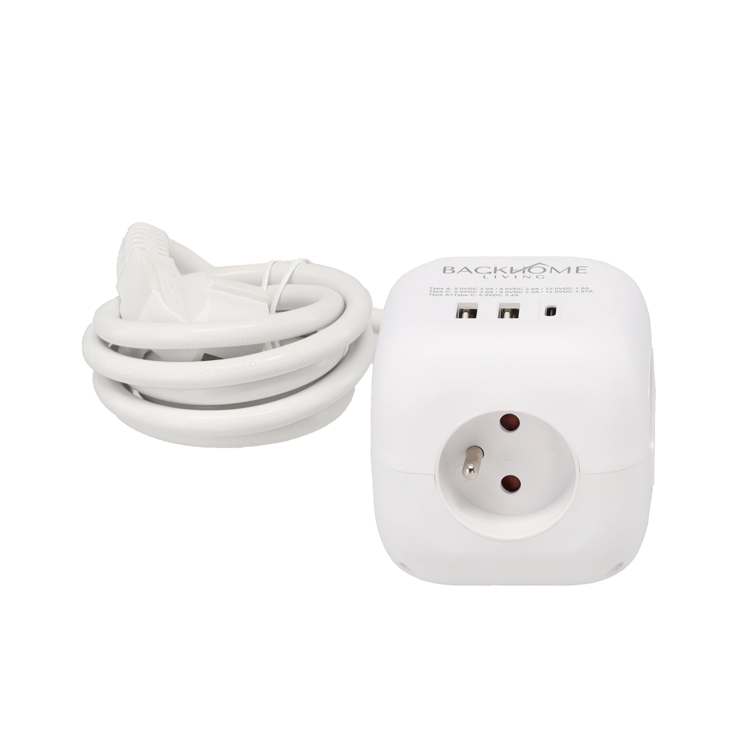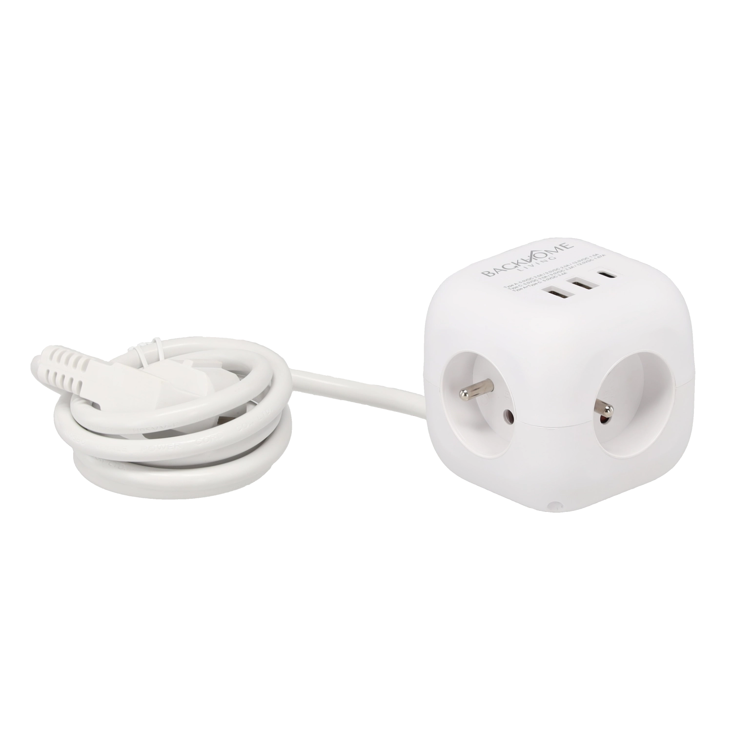 Élégant cube multiprise combinant alimentation et recharge. Il offre 3 prises CA (230 V) pour ordinateur portable, lampe ou chargeur et 3 ports USB pour téléphones, tablettes et accessoires. L’USB‑C avec Power Delivery 20 W assure une charge rapide des appareils récents, tandis que la forme compacte économise de l’espace et limite l’encombrement des fiches.