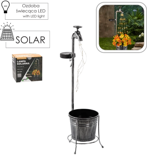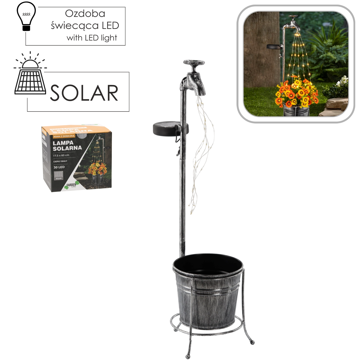 Lampe de jardin solaire avec robinet décoratif et pot de fleurs