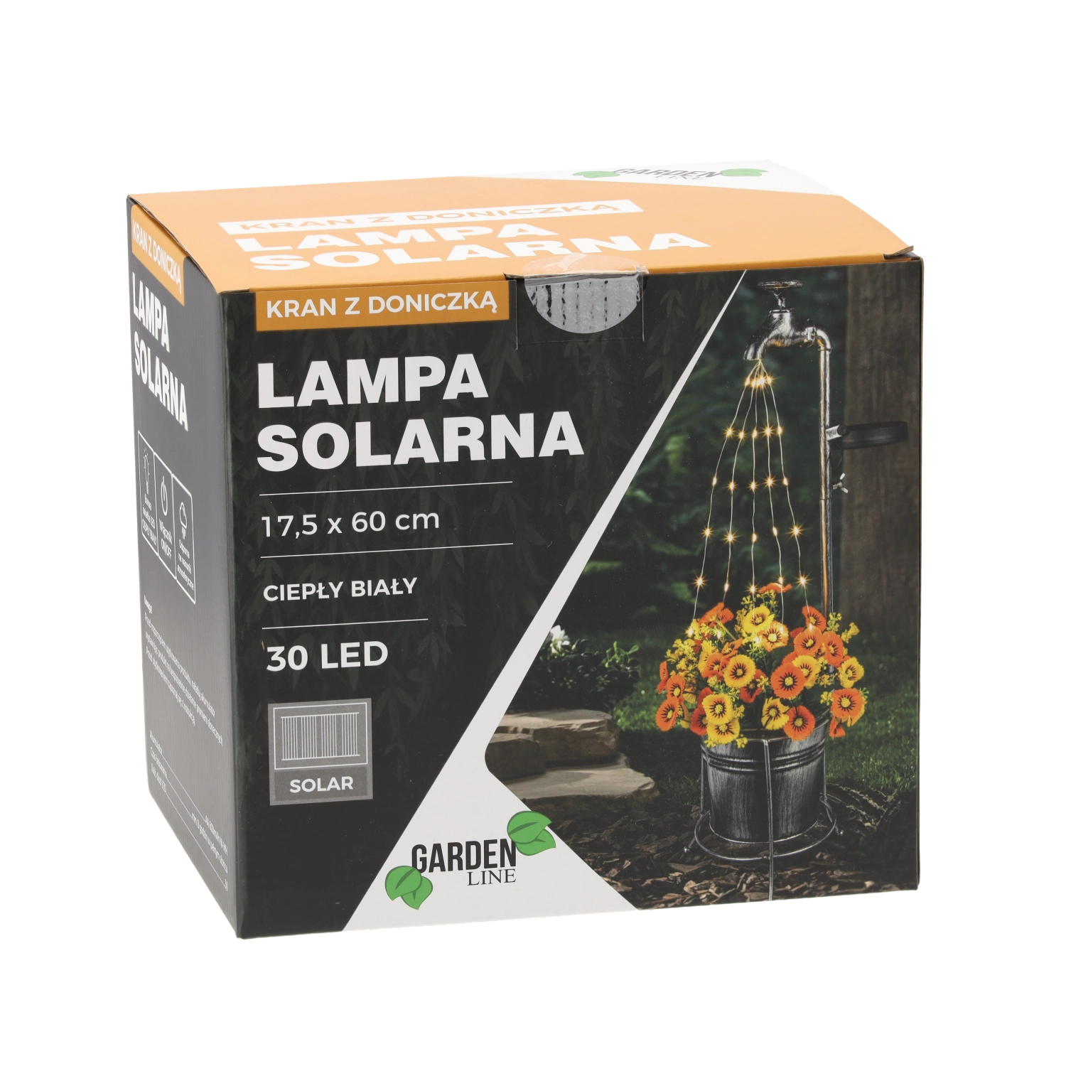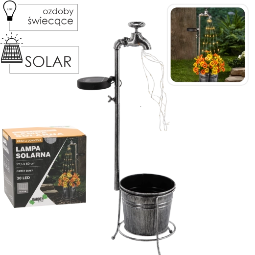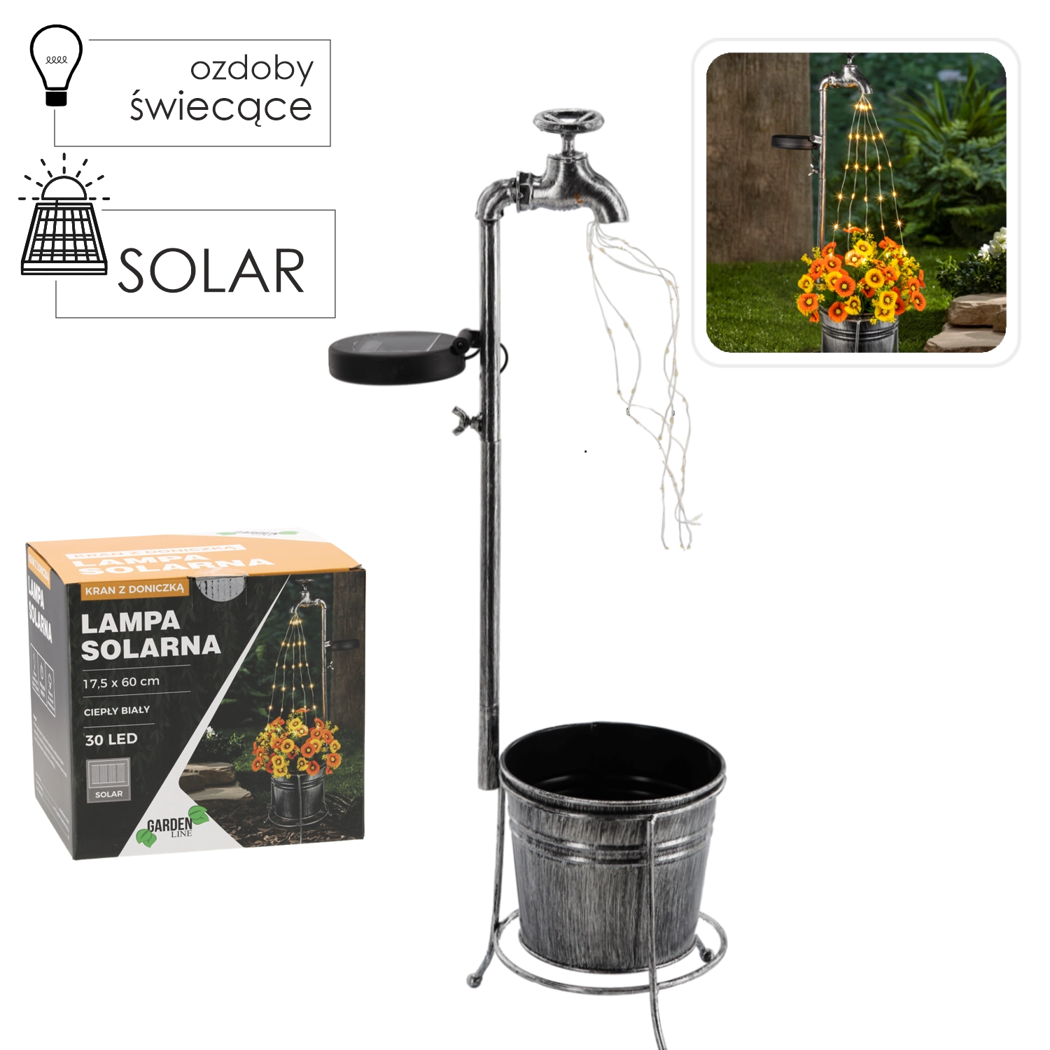 Lampe de jardin solaire avec robinet et pot de fleurs, 30 LED blanc chaud, 60 cm