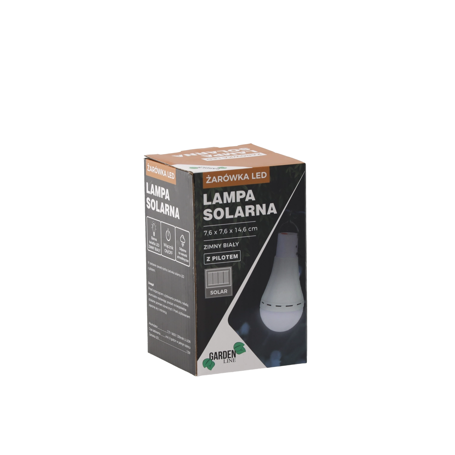 La batterie Li‑ion intégrée 3,7 V (18650) 1200 mAh assure une puissance stable et la LED 12 W produit une lumière blanche froide et brillante pour se déplacer en sécurité et s’orienter après la tombée de la nuit. Le panneau polycristallin garantit une recharge efficace durant la journée.