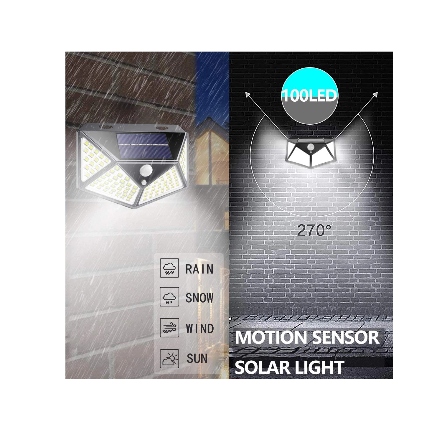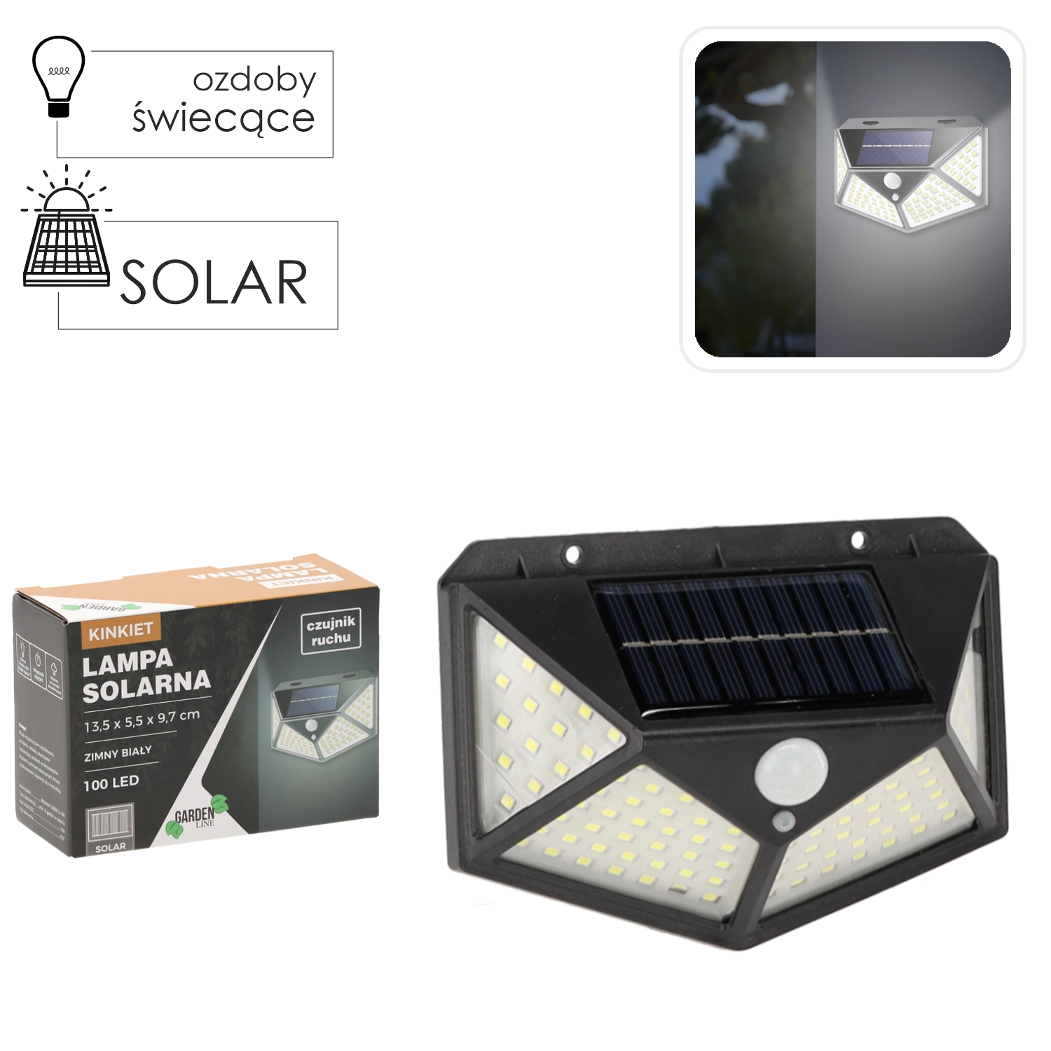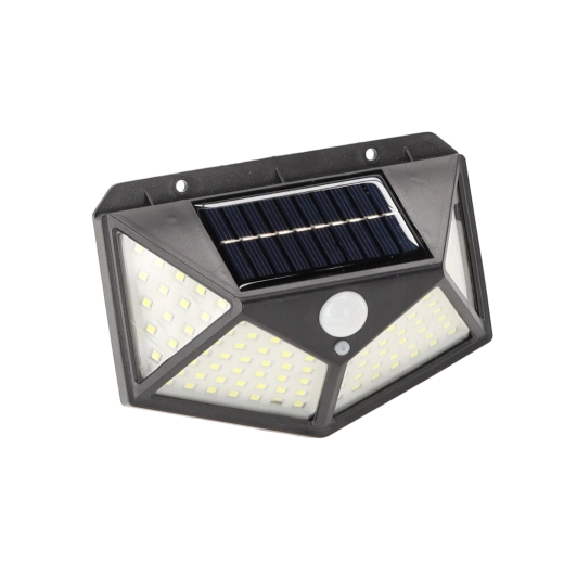 Cette lampe d’extérieur pratique à charge solaire offre un éclairage grand angle grâce à la matrice dense de 100 LED. Le capteur PIR intégré réagit au mouvement – la lumière s’allume à la détection et s’éteint en l’absence d’activité, garantissant un passage sécurisé et des économies d’énergie.