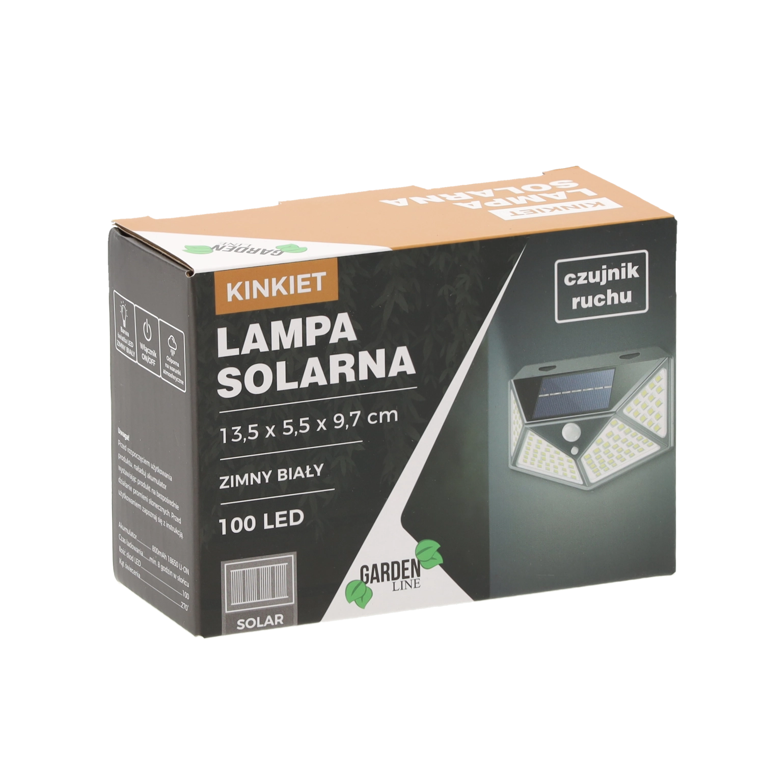 Ses dimensions compactes 13,5 × 5,5 × 9,7 cm permettent une installation discrète sur les murs près des entrées, garages ou clôtures. La batterie intégrée 18650 Li‑ion 800 mAh se recharge pendant la journée via le panneau solaire supérieur et fournit la nuit une lumière blanc froid éclatante sans besoin de réseau électrique.