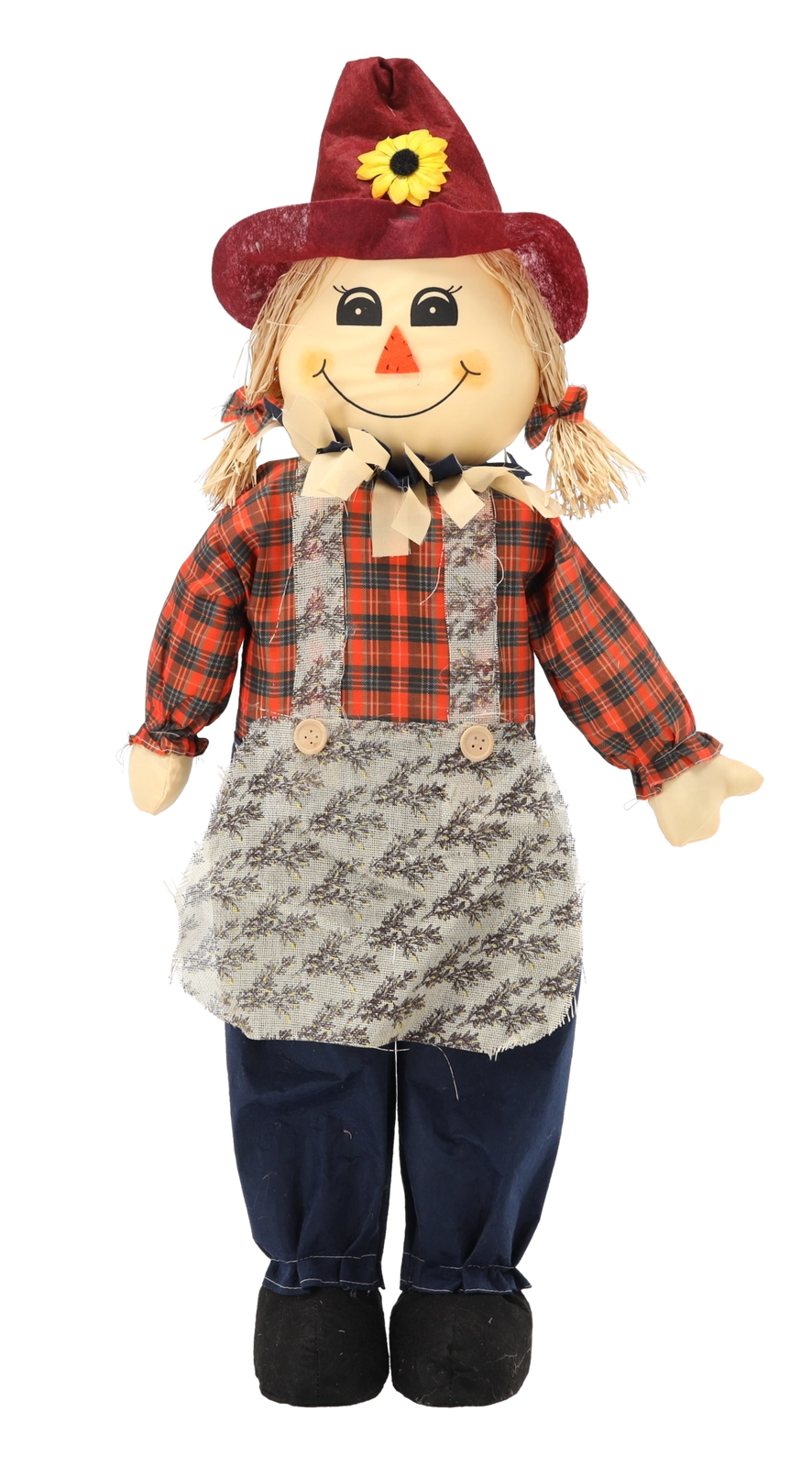 Visuellement séduisant, l’épouvantail est fabriqué en matériaux textiles avec un grand souci du détail – du chapeau et de la salopette jusqu’aux pièces décoratives cousues. Il s’intègre parfaitement aux mises en scène automnales tout en aidant efficacement à éloigner les oiseaux des massifs et des jardinières.