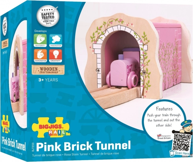 Le tunnel ferroviaire rose BIGJIGS RAIL est un accessoire élégant qui apporte de la couleur et de nouvelles possibilités de jeu à votre circuit de train en bois. Grâce à sa construction solide et à ses bords lisses, il est sûr pour les petites mains et prêt pour un usage quotidien.