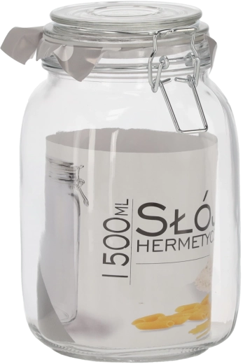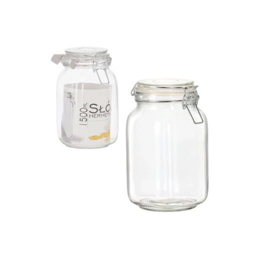 Bocal carré pratique d’un volume de 1,5 l avec une fermeture mécanique robuste garantissant une excellente étanchéité et une fraîcheur durable des aliments stockés. Idéal pour le miel, les confitures, les épices et autres délices pour la cuisine ou le garde-manger, tout en servant aussi de élément décoratif élégant.