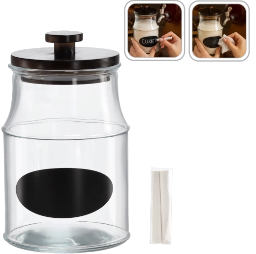 Ce bocal spacieux est parfait pour un rangement clair et hygiénique des aliments dans le garde-manger comme dans la cuisine. Le couvercle en bois assure une fermeture hermétique et aide à préserver la fraîcheur et les arômes des ingrédients stockés. Grâce à l’étiquette et à la craie fournies, vous saurez toujours ce que contient le bocal.
