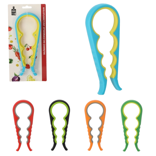 Pratique ouvre-bocaux et bouteilles multifonction qui facilite l’ouverture des pots de conserve et des boissons avec différents fermetures. Grâce à son design ergonomique et à son plastique de qualité, l’utilisation est confortable et sûre. Ses dimensions compactes permettent un rangement facile et une utilisation rapide à tout moment.