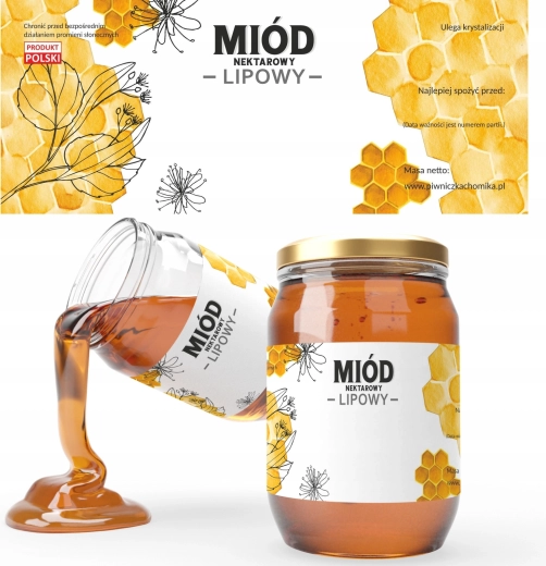 Ensemble professionnel d’étiquettes conçu pour l’identification du miel de nectar – tilleul. Grâce à l’espace lisible pour le texte, vous indiquez facilement le type de miel et la date de consommation, ce qui facilite l’identification pour les clients et renforce la confiance dans votre produit.