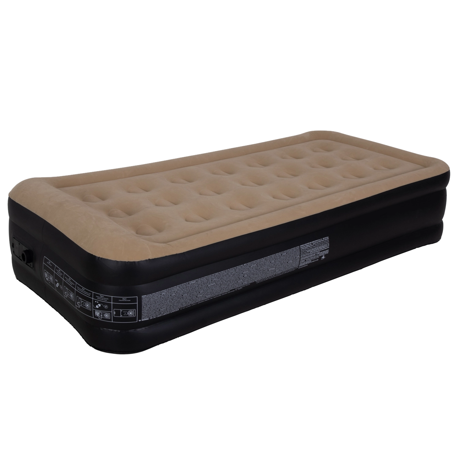 Le matelas gonflable à double hauteur assure un meilleur soutien du corps et facilite l’installation comme le lever. Le vinyle résistant associé à une surface en velours antidérapante garantit un sommeil agréable, tandis que la structure coil-beam multi-chambres conserve la forme et la stabilité toute la nuit.