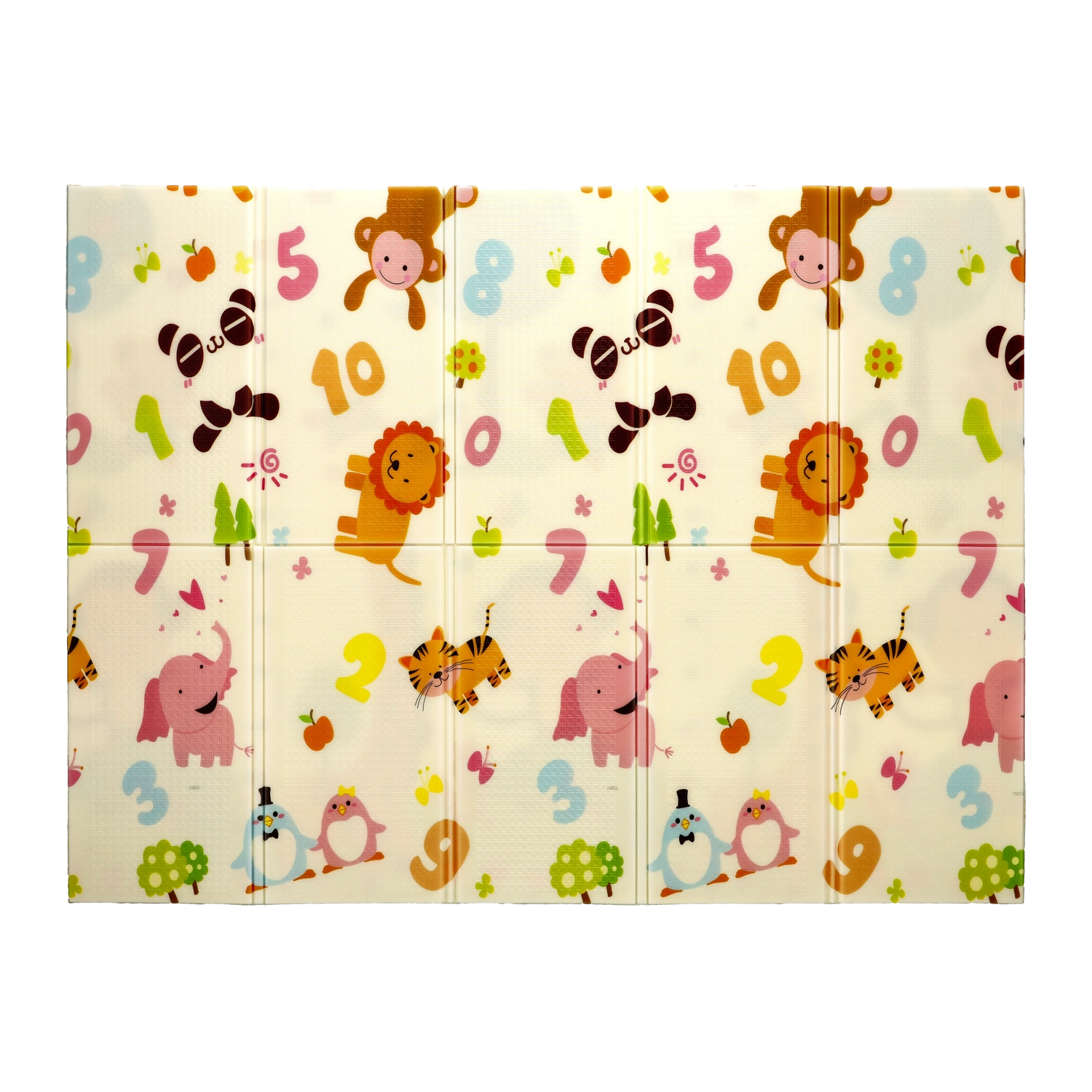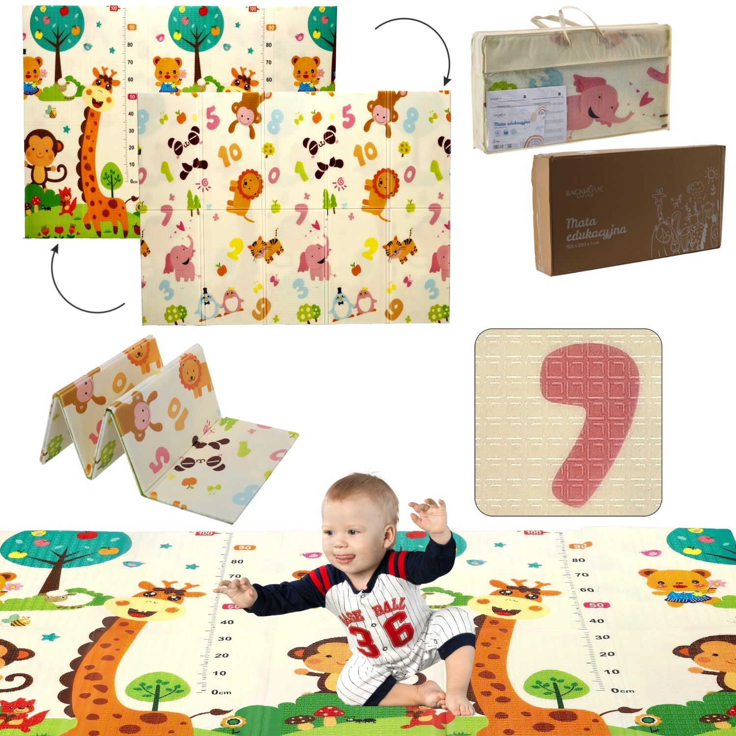 - Design double face – motifs éducatifs d’animaux et de chiffres favorisant l’apprentissage.