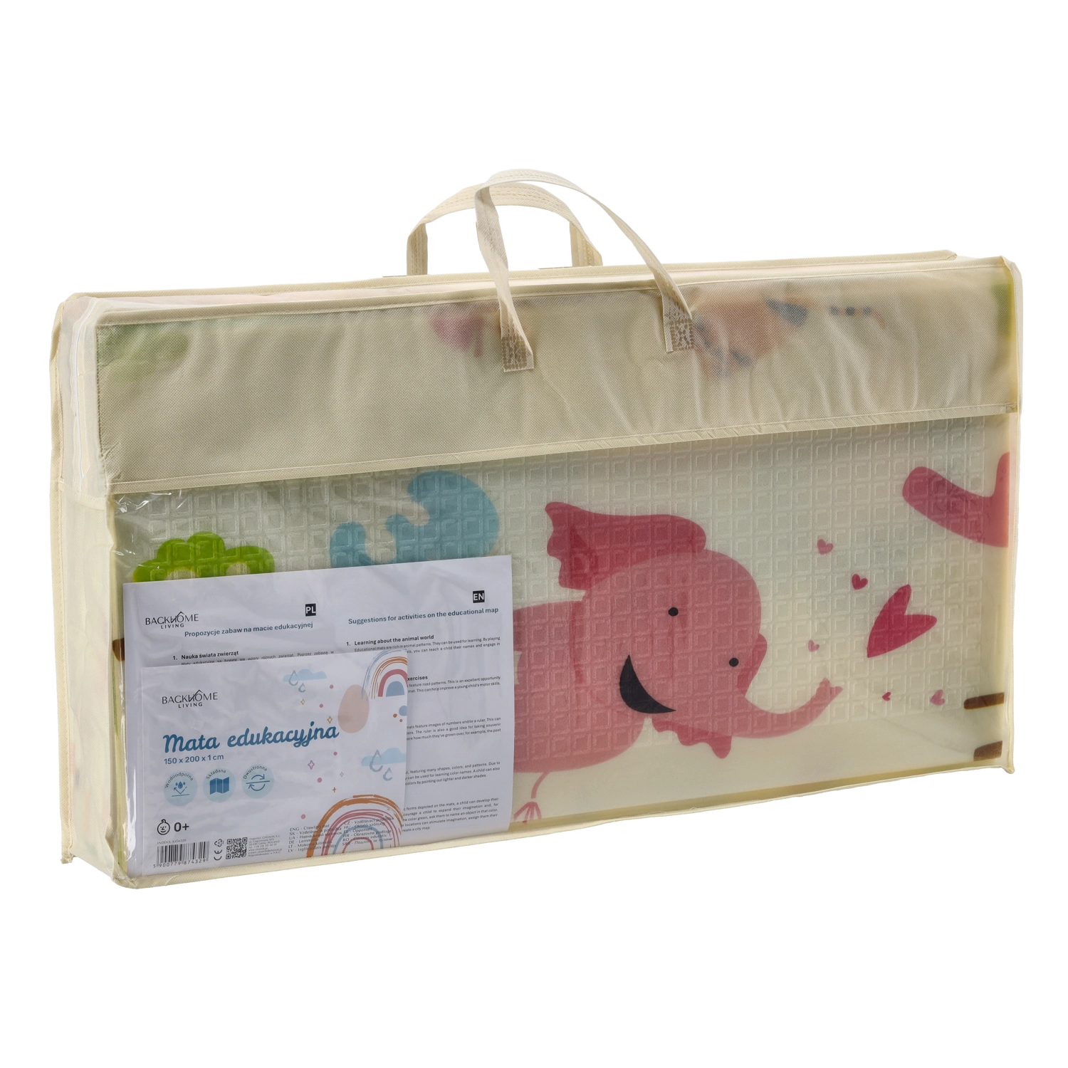 La mousse XPE est légère, hygiénique et résistante à l’humidité – un simple coup de chiffon humide suffit pour nettoyer le tapis. Grâce à sa structure pliable, vous le pliez aisément dans le sac textile fourni pour l’emporter en visite, au parc, ou le ranger dans un placard. Le produit dispose de la certification CE 0+, il convient donc dès la naissance.