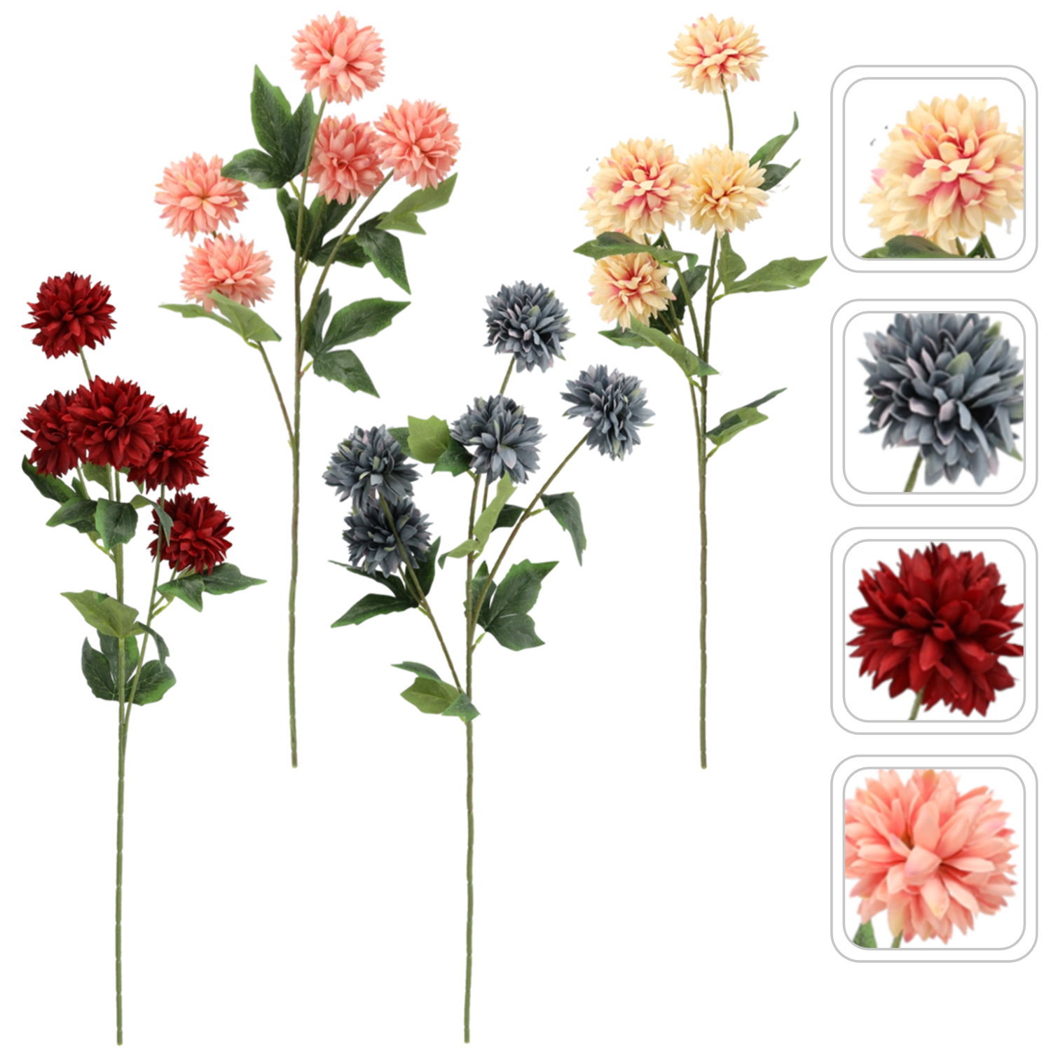 Branche artificielle de chrysanthème avec cinq fleurs 71 cm, assortiment de couleurs