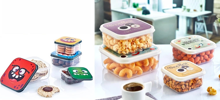 - Idéal pour les enfants : couvercles colorés à motifs, ouverture facile