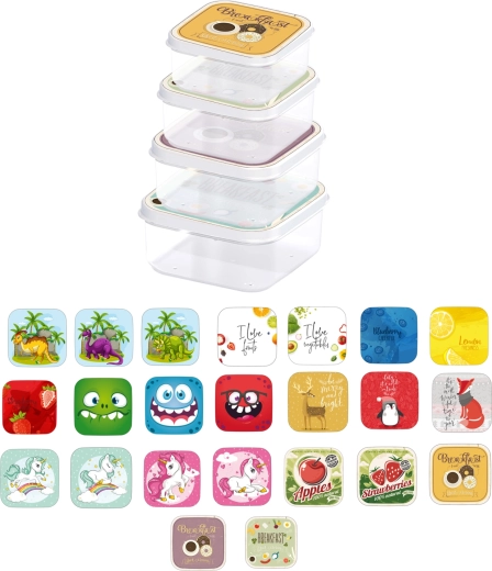 Avec cet ensemble de 4 boîtes carrées, vos collations et petits aliments seront toujours rangés de manière claire et hygiénique. Les boîtes sont fabriquées en plastique résistant et sans danger pour les aliments, et les couvercles aux motifs joyeux encouragent les enfants à les utiliser de façon autonome.
