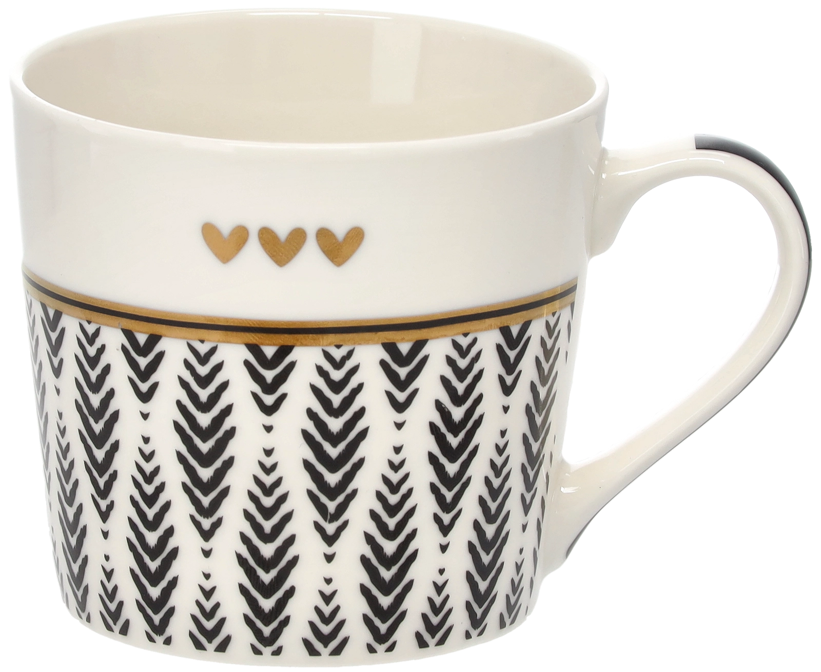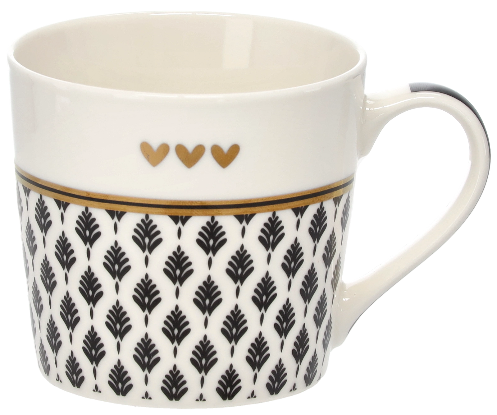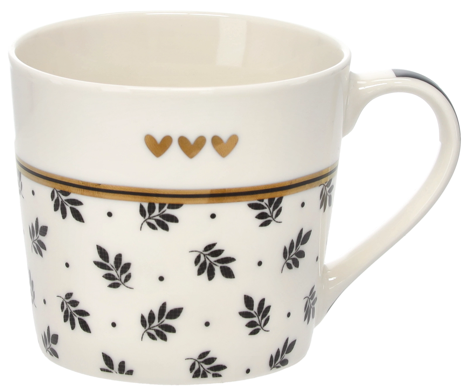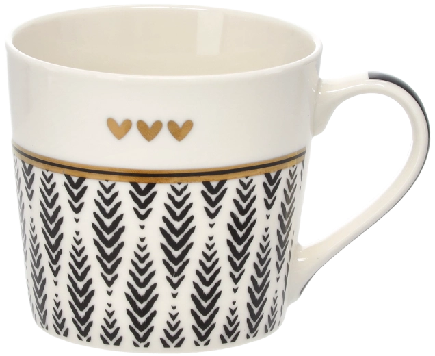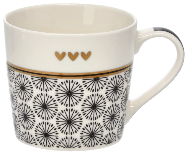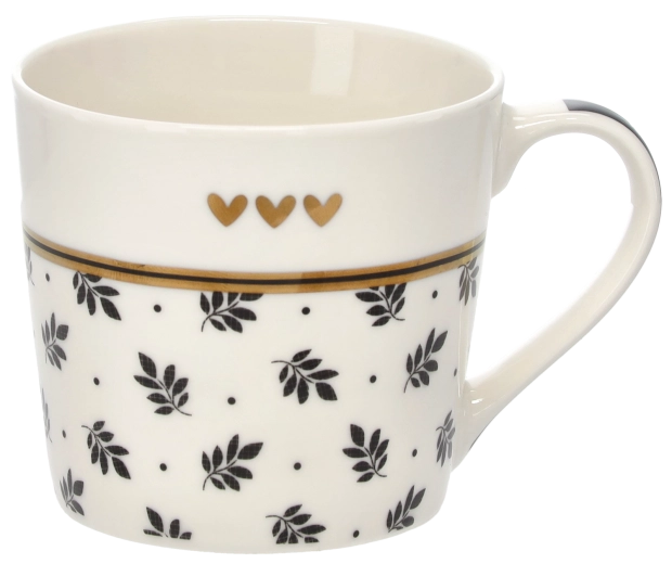 Un délicat motif de brindilles, complété par trois petits cœurs et un liseré doré, confère au mug une allure sophistiquée qui se démarque sur toute table.