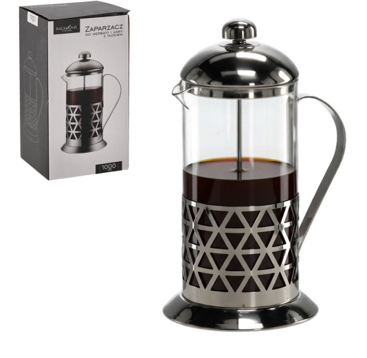 Élégant french press à levier de 1000 ml pour une préparation facile de votre café et thé préférés. L’association du verre borosilicaté et de l’inox garantit une longue durabilité, une résistance aux hautes températures et une extraction pure et aromatique grâce au piston doté d’un filtre fin. Poignée ergonomique et bec verseur précis pour un service sûr sans éclaboussures.
