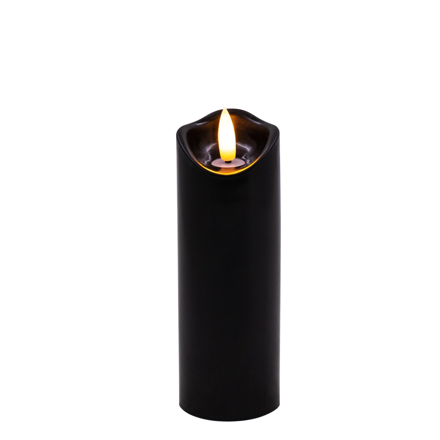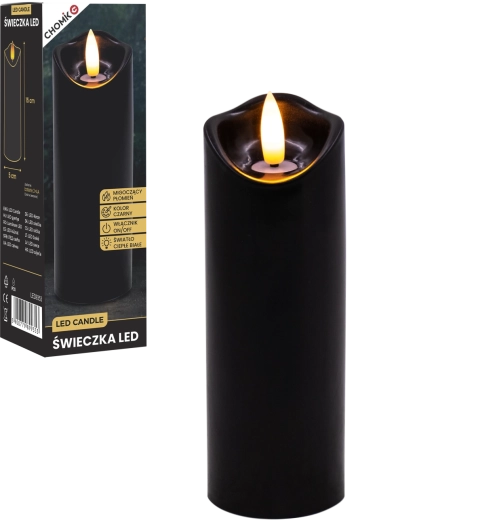Bougie LED noire 5 × 15 cm à flamme vacillante chaude